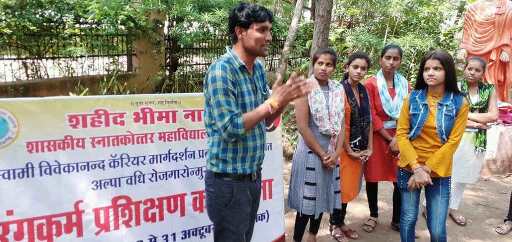 यह सौभाग्य केवल रंगकर्मी को मिलता है कि वह एक जिंदगी में कई जिंदगियां जी लेता है। अलग अलग नाटकों में आपको अलग अलग भूमिकाएं मिलेंगी। कभी आप राजनेता तो कभी आप संन्यासी बनते हो। कभी आप पुलिस अधिकारी तो कभी आप अपराधी बनते हो। आप हर रोल के समय एक विषेष अनुभूति से गुजरते हो। किरदार को फील करके ही किरदार को जिया जा सकता है। ये बातें शहीद भीमा नायक शासकीय स्नातकोत्तर महाविद्यालय, बड़वानी के स्वामी विवेकानंद कॅरियर मार्गदर्षन प्रकोष्ठ द्वारा प्राचार्य डाॅ. आर. एन. शुक्ल के मार्गदर्षन में संचालित की जा रही अल्पावधि रोजगारोन्मुखी रंगकर्म प्रषिक्षण कार्यषाला में रंगकर्मी डाॅ. प्रवीण मालवीया ने कहीं। उन्होंने प्रषिक्षुओं को पर्यावरणीय चेतना पर आधारित एक लघु नाटक तैयार करते हुए नाट्यकला की बारीकियों से अवगत करवाया। डाॅ. मालवीया ने कहा कि संवाद और तनभाषा के सही समन्वय से नाटक में प्रभाव उत्पन्न होता है। संगीत तथा प्रकाष इसे और आकर्षक बनाते हैं। आप अपने दृष्यों में और संवादों के इम्पेक्ट के रूप में संगीत का भी उपयोग कीजिये। कोरियोग्राफर ज्योति जोषी ने भी प्रषिक्षण देते हुए कहा कि संवादों पर रिएक्ट कीजिये। एक पात्र संवाद बोलते वक्त सिर्फ खड़े रहकर अपनी बारी की प्रतीक्षा करेगा तो नाटक निर्जीव हो जायेगा। राहुल मालवीया और डाॅ. मधुसूदन चैबे ने भी टिप्स दीं। कार्यकर्ता प्रीति गुलवानिया ने बताया कि चालीस युवा इन दिनों काॅलेज में रंगकर्म का प्रषिक्षण ले रहे हैं। उन्हें उद्यान, स्टेडियम, स्टेज तथा खुले स्पेष में प्रषिक्षण देकर हर परिवेष में प्रस्तुति में सक्षम बनाने का प्रयास किया जा रहा है।