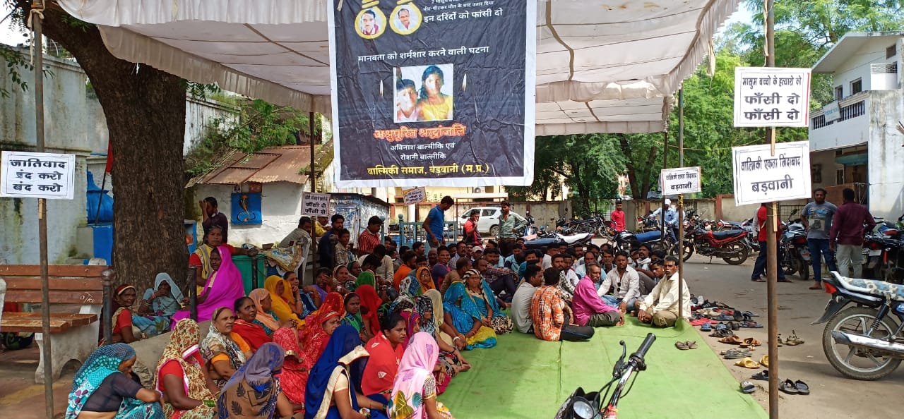 बड़वानी/ शिवपुरी जिले के ग्राम भावखेड़ी मैं हुए वाल्मिकी समाज के दो मासूम बच्चों की हत्या के विरोध मे शनिवार को प्रदेश भर में सफाई कर्मचारियों द्वारा एक दिवस की हड़ताल रखी गई, इसी तारतम्य में बड़वानी में भी विरोध प्रदर्शन किया जाककर  सुबह वाल्मिकी समाज ने घटना के विरोध में रैली निकाली व शाम को बड़वानी शहर के माँ मोटी माता चोराहे से कंडेल मार्च कारंजा तक निकालकर श्रदांजलि दी!