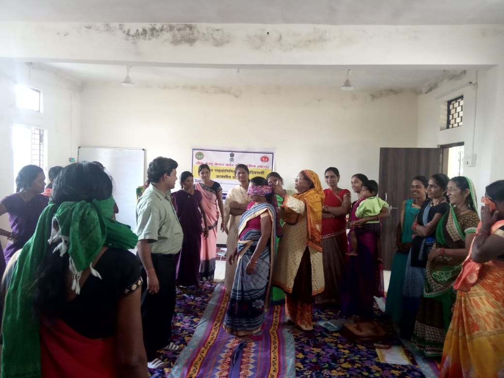 आप ने नशे में धुत व्यक्ति को अक्सर गली मोहल्लों में लड़खड़ाते देखा होगा ऐसा ही एक मंजर राजपुर एवं ठीकरी ब्लाॅक की आशा प्रशिक्षणार्थियों के आशाग्राम में प्रशिक्षण के दौरान देखने को मिला जब कार्यकर्ताओं ने आंखों पर पट्टी बांधकर खेल के माध्यम से बच्चों की गृह आधारित देखभाल में पिता की भूमिका के विषय में प्रस्तुति दी।