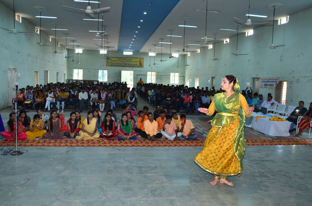 बड़वानी /शहीद भीमा नायक शासकीय स्नातकोत्तर महाविद्यालय बड़वानी के स्वामी विवेकानंद कॅरियर मार्गदर्षन प्रकोष्ठ की आयोजन व्यवस्था में स्पीक मैके के सौजन्य से नई दिल्ली से आईं अंतर्राष्ट्रीय कत्थक नृत्यांगना सुश्री मऊमाला नायक ने महाविद्यालय में नृत्य की भव्य प्रस्तुति दी। साथ ही उन्होंने करीब चार सौ विद्यार्थियों को नृत्य का प्रशिक्षण भी दिया। अध्यक्षता प्राचार्य डाॅ. आर. एन. शुक्ल ने की। स्पीक मेके की बड़वानी इकाई के प्रभारी श्री अनिल जोशी ने स्पीक मेके का परिचय देते हुए बताया कि यह संस्था युवाओं में कला, संगीत एवं संस्कृति का प्रसार करने के महत्वपूर्ण कार्य को सम्पन्न कर रही है। संयोजन एवं संचालन प्रीति गुलवानिया, किरण वर्मा और राहुल मालवीया ने किया। भूमिका शर्मा, दीपिका धनगर, रवीना मालवीया, कोमल सोनगड़े, नंदिनी मालवीया, वर्षा मालवीया, किरण वर्मा, विधि लोनारे, चेतना कुशवाहा, जितेंद्र चैहान, सूरज सुल्या, राहुल वर्मा, अंशुल सुलिया ने अतिथियों का स्वागत किया और स्वागत गीत तथा सरस्वती वंदना का गायन किया।