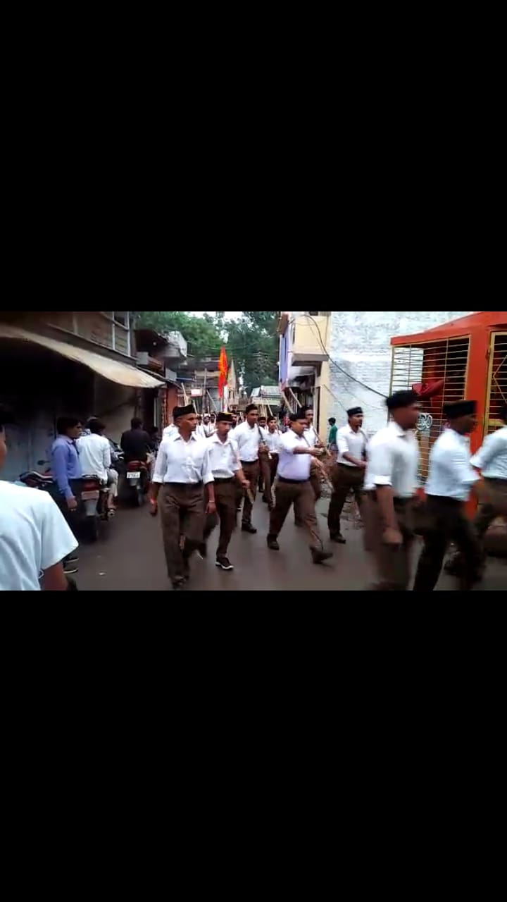 रविवार को राष्ट्रीय स्वयंसेवक संघ के स्वयंसेवकों ने संघ का वार्षिक पथ संचलन नगर में निकाला।जिसमें नगर के सैकड़ों स्वयंसेवकों ने राष्ट्रीय एकता की भावना के साथ कदमताल की। संघ के स्थापना दिवस विजयादशमी के अवसर पर प्रतिवर्ष पथ संचलन  निकाला जाता है।इस संचलन के पुर्व बौद्धिक हुआ जिसमें मुख्यवक्ता के रूप में संघ के जिला प्रचारक पीरू कन्नौजे ने विषय रखते हुए कहा भारत भूमि पर अनेक महापुरुषों ने जन्म लिया ओर उन्होंने ने पुण्य कर्म कर देश धर्म की रक्षा की।हमें अपनी धरती को बचा कर रखना चाहिए।क्योंकि हमारा जीवन इस धरती से है।हमें आज आत्म चिंतन की आवश्यकता है की हम अपनी मातृभूमि के लिए क्या समर्पण कर रहे हैं।इस दौरान मंच पर अध्यक्षता के लिए समाजसेवी सतीष गुप्ता तहसील संघचालक शंकरलाल जी कांग, नगर संघचालक बसंतीलाल जी विश्वकर्मा मौजूद रहे।
