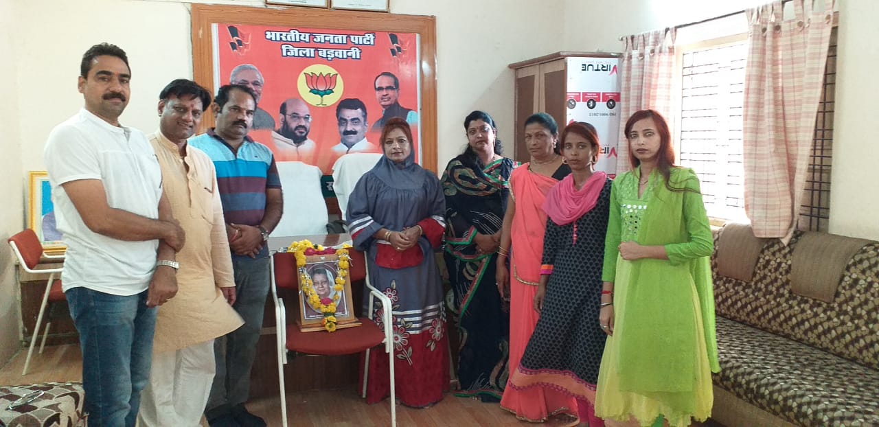 बड़वानी। भारतीय जनता पार्टी महिला मोर्चा नगर मंडल द्वारा पार्टी की वरिष्ठ नेता राजमाता सिंधिया की जयंती शनिवार को मनाई। इस अवसर पर आयोजित कार्यक्रम में मुख्य अतिथि नगर मंडल अध्यक्ष बंटी पुरोहित एवं विशेष अतिथि के रूप में नगर मंत्री अजय कानूनगो एवं कमल शक्ति के राजेंद्र सोनी मौजूद थे। वहीं अध्यक्षता मुनीरा सालीवाला ने की। कार्यक्रम के दौरान अतिथियों द्वारा राजमाता सिंधिया के जीवन पर विस्तारपूर्वक प्रकाश डाला गया। साथ ही महिला मोर्चा पदाधिकारी व कार्यकर्ताओं को राजमाता के बताए मार्ग पर चलने का संकल्प भी दिलाया गया। इस अवसर पर जिला मंत्री निर्मला मारिया, सोशल मीडिया प्रभारी प्रिया सोनी, नगर महिला मोर्चा महामंत्री कविता यादव, कोषाध्यक्ष शीतल यादव सहित अन्य कार्यकर्ता मौजूद थे।