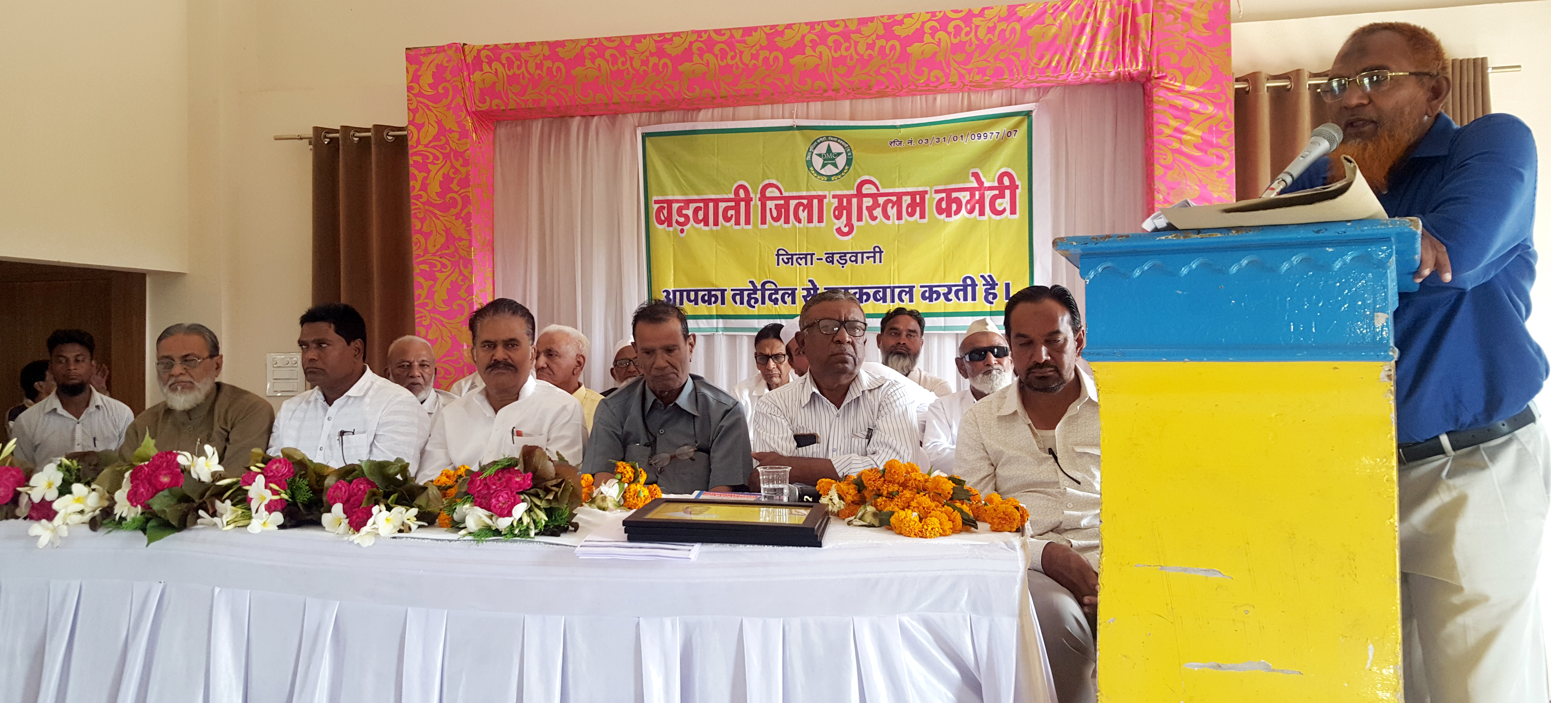 बड़वानी /जिला मुस्लिम कमेटर की बैठक शनिवार को जिला मुख्यालय पर सम्पन्न हुई। उक्त बैठक में कमेटी के सरपरस्तों सहित जिले की सभी मस्जिदों के सदरए सेकेटरी एवं कार्यकारी सदस्य मौजुद थे। कमेटी के जनरल सेकेट्री हाजी अफजल खान ने बताया कि हाॅटल जलसा में करीब चार घंटे चली इस बैठक में कई महत्वपूर्ण मुद्दों पर चर्चा की गयी। बैठक की शुरूआत मुफ्ती इरफान साण् ने तिलावते कुरआन से की। कार्यकारी सदर सत्तार मंसुरी ने बताया कि कौम की खिदमत के लिये इदरिष खानएबालसमद को एवं सेंधवा के समर खान को सम्मानित किया गया। राजनीति के उच्च आदर्ष स्थापित करने के लिये श्री विरेन्द्रसिंह दरबार को कमेटी की ओर से सिपास नामा प्रदान किया गया। अपने उद्बोधन में श्री दरबार ने उपस्थित कमेटी के सदस्यों से कहा कि वही समाज आगे बढ़ता है जो षिक्षा को बढ़ावा देता हैए चुनोतियों को स्वीकार करता है। मुस्लिम समाज के आप लीडर हैए मुस्लिम समाज आपकी ओर टकटकी लगाये देख रहा है। इतिहास साक्षी है हिन्दू.मुस्लिम हमेषा भाईचारे से इस देष में रहे है। यही इस देष की खुबसुरत संस्कृति है। यह सम्मान मैरा नही बल्कि विचारों का हैए व्यक्ति के विचार ही उसे इस मुकाम तक पहुंचाते है। बड़वानी के नव निर्वाचित सदर श्री फरीद मंसुरी का भी कमेटी के सदस्यों ने स्वागत किया।