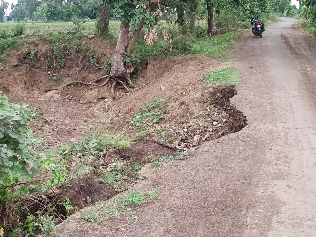 खेतिया(सुभाष सोनेस) शहर के निकट स्थित अति प्राचीन मंदिर श्री रोकडिया हनुमान मंदिर से होकर भड़गोन को जोड़ने वाली सड़क एक सप्ताह पूर्व हुई पहली बारिश में क्षतिग्रस्त हो गई इस मार्ग पर बनी पुलिया बिखर गई हैं वहीं खेतों के किनारों से निकली सड़क कई स्थानों पर कट गई। पहली बारिश के साथ सड़कों का यह हाल बना इस मार्ग के बनने से किसानों व श्रद्धालुओं को सुविधाएं मिलती है, यदि सड़क शिघ्र सुधारी नहीं जाती है तो आने वाली वर्षा से बहुत अधिक दिक्कत हो सकती है।इस मार्ग निर्माण के साथ ही आरंभ से ही पुलिया को लेकर किसानों की शिकायत रही थी,वही सड़क के कटने से आने वाले समय मे दिक्कत अधिक होंगी,,क्षेत्रीय किसानों व श्रद्धालुओं ने शिघ्र सड़क दुरुस्त किये जाने की मांग की है।