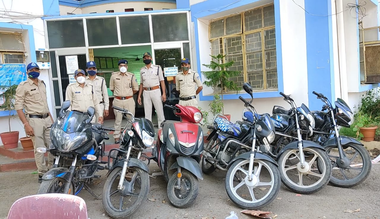 बड़वानी / विगत दिनों कस्बा बड़वानी एवं आसपास के क्षेत्रों में वाहन चोरी निरंतर हो रही थी जो पुलसिअधीक्षक श्री निमीष अग्रवाल ने वाहन चोरी की घटना को गंभीरता से लेते हुये अतिरिक्त पुलिस अधीक्षक महोदय आर..डी प्रजापति एवं एस.डी.ओ.पी. सुश्री रुप रेखा यादव के मार्गदर्शन में थाना प्रभारी कोतवाली राजेश यादव को चोरी गई मोटर सायकलो की जल्द से जल्द पतारासी करने के निर्देश दिये गये जाने पर थाना प्रभारी टी.आई. राजेश यादव ने उनि राजीवसिंह ओशाल, सउनि आर.के लववंशी, विक्रमसिंह किराड़े,आरक्षक, बलवीर, शैलेन्द्र, अंतरसिंह, गेंदालाल आर. सुरेन्द्र, की टीम गठित की जो टीम ने लगातार अज्ञात आरोपीयों व चोरी गई मोटर सायकलों की पतारासी हुये मुखबिर तन्त्र को सक्रिय कर पता करते टीम को मुखबिर सुचना मिली कि एक सोण्डवा अलिराजपुर का नाबालिक 17 साल 6 माह का बालक बड़वानी से चोरी गई मोटर सायकल चोरी में शामिल है जो सुचना के आधार पर उक्त बालक की लगातार टीम द्वारा पतारासी करते टीम को सुचना मिली की उक्त सोण्डवा का नाबालिक लकड़ा बड़वानी तरफ आने वाला है जो उक्त टीम द्वारा बायपास रोड़ कसरावद पुल पर वाहन चैकिंग के दौरान एक नाबालिक लड़का एक डिलक्स मोटर सायकल लेकर आते मिला जिससे मोटर सायकल के कागजात के संबंध में टीम द्वारा पुछताछ करने पर कभी कुछ कभी कुछ बोलने लगा जो टीम को मोटर सायकल चोरी की होने की शंका होने पर नाबाललिक लड़के को थाने लेकर आये जिससे वैज्ञानिक एवं मनोवैज्ञानिक तरिके पुछताछ करते मोटर सायकल चोरी की होना बताया। जिससे और भी चोरी गई मोटर सायकलो व उसके साथीयों के संबंध में पुछताछ करने पर नाबालिक लड़के ने सोनु उर्फ रवि पिता मधु सुर्यवंशी उम 19 वर्ष नि. ब्रज विहार कालोनी बड़वानी व अन्य एक नाबालिक लड़के के साथ सुखविलास कालोनी बड़वाननी से एक एच.एफ. डिलक्स मो.सा. एम.पी. 46m एम.एम. 7579, मधुबन कालोनी बड़वानी से एक एच.एफ. डिलक्स मो.सा. एम.पी.46 एम.एल. 1548, पी.जी. कालेज बड़वानी ग्राऊण्ड के पिछे से हिरो पैशन प्रो मो.सा. क्र.एम.पी. 46 एम.एन. 9780 व स्पेलेण्डर प्रो मो.सा. क्र. एम.पी. 46 एम.सी.8101 तथा झामरिया गार्डन बड़वानी से होन्डा लिवो मो.सा. क्र. एम.पी. 46 एम.आर. 9068 चोरी करना कबुल करने पर आरोपी सोनु सुर्यवंशी व अन्य 01 नाबालिक लड़के की ,टीम द्वारा पतारासी कर उक्त चोरी की गई 5 मोटर सायकले व एक बजाज पल्सर मोटर सायकल 220 भी जप्त की गई जिसको आरोपी व नाबालिक लड़को द्वारा झाबुआ से चोरी करना बताया।