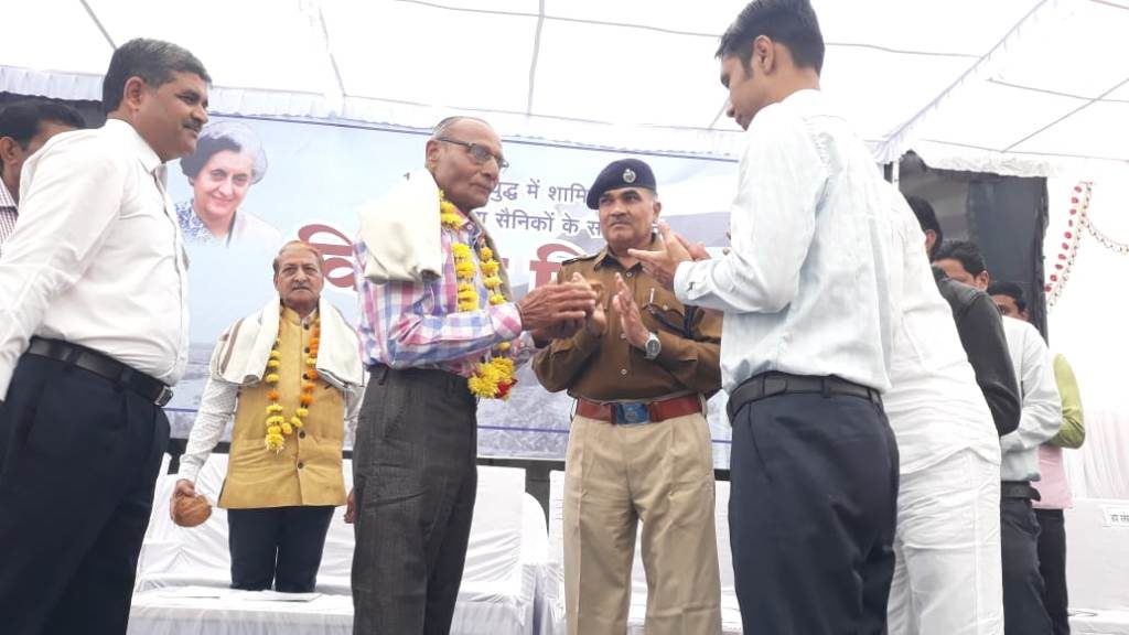कार्यक्रम के दौरान कलेक्टर श्री अमित तोमर, नगर पालिका अध्यक्ष श्री लक्ष्मण चैहान, पुलिस अधीक्षक श्री डीआर तेनीवार एवं जिला पंचायत सीईओ श्री मनोज सरियाम ने 1971 के युद्ध में शामिल रिटायर्ड सूबेदार श्री राधेश्याम सोनी, रक्षा मेडल से सम्मानित श्री सीताराम सोनी, कारगिल युद्ध में शामिल सूबेदार श्री मुकेश डोंगरे तथा नायब सूबेदार श्री नंदकिशोर भार्गव का सम्मान शाल एवं श्रीफल देकर किया।