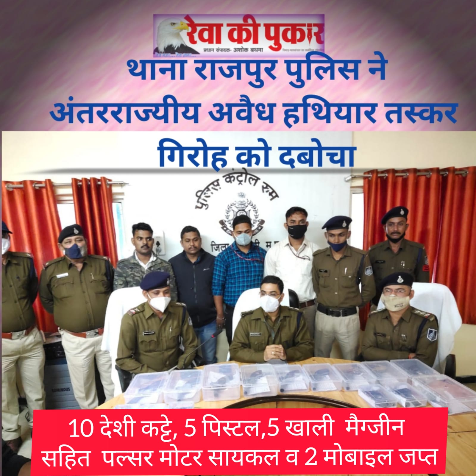 बड़वानी  /  थाना राजपुर पुलिस व्दारा अवैध हथियार तस्करी करने वालो के खिलाफ लगातार कार्यवाही की जा रही है, हाल ही में बड़वानी पुलिस अधीक्षक श्री दीपक कुमार शुक्ला ने जिले के सभी थाना प्रभारीयों को अवैध हथियार तस्करी करने वालो केखिलाफ कार्यवाही के निर्देश दिये गये, जो राजपुर थाना प्रभारी टी.आई.श्री राजेश यादव ने पुलिस अधीक्षक बड़वानी के निर्देशन एंव अति. पुलिस अधीक्षक श्री आर.डी. प्रजापति, एस.डी.ओ.पी. श्री पदमसिंह बघेल के मार्गदर्शन में एक टीम गठित कर टीम को अवैध हथियार तस्करो पर कार्यवाही करने के निर्देश दिये गये जो राजपुर पुलिस टीम द्वारा मुखबिर तंत्र को सक्रिय कर वैज्ञानिक एवं तकनिकी माध्यम से अवैध हथियार तस्करों कि पतारासी करते राजपुर पुलिस टीम को मुखबिर द्वारा सुचना मिली की एक पल्सर मोटर सायकल पर तीन व्यक्ति पलसुद रोड़ तरफ से अवैध हथियार लेकर राजपुर तरफ आने वाले है।