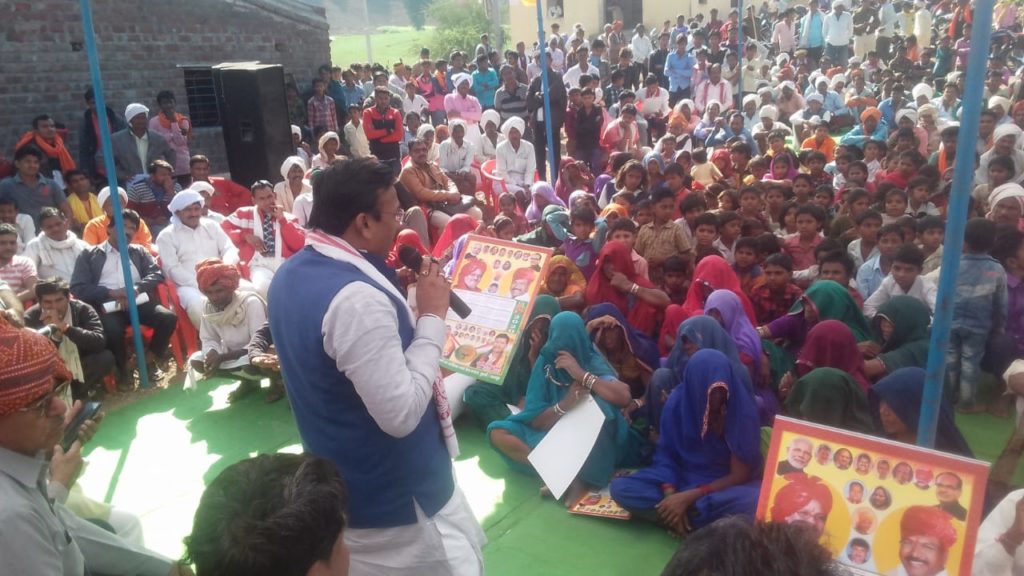 परिचय के बाद सांसद ने अपने संबोधन में केंद्र सरकार की जन कल्याणकारी योजना के बारे में उपस्थित लोगों को विस्तार से बताया और प्रदेश की सरकार पर तंज कसते हुए कहा कि प्रदेश की सरकार कई ऐसी जनकल्याणकारी को बंद कर दी है, जो भाजपा की सरकार ने चालू की थी, प्रदेश में कांग्रेस की सरकार सिर्फ वादे करती हैं, लेकिन भाजपा की सरकार वादे नही करती काम करके दिखाती हैं, इसके बाद विधायक ने भी लोगो को संबोधित करते हुए कहा कि आगामी पंचायत चुनाव में सभी पंचायतो में भाजपा के सरपंच बनाना है, ताकि केंद्र सरकार की जनकल्याणकारी योजनाओं का क्रियान्वयन सही हो सके।