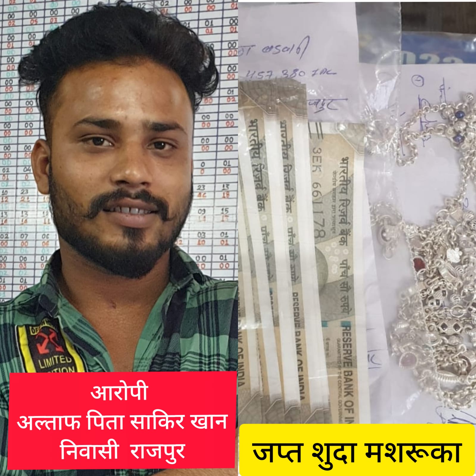 बड़वानी (राजपुर) जिले की राजपुर थाना पुलिस ने राजपुर निवासी शातिर चोर अल्ताफ पिता साकिर खान उम्र 22 साल निवासी त्रिवेणी मंदिर के सामने को दबोचने का सराहनीय प्रयास किया है। आरोपी से के टी एम 200 डूके बाइक 2 लाख रुपया,चांदी की पायजेब 4 जोड़ी कीमती 10 हजार ,20000 रुपए नगद जप्त किए। राजपुर थाना प्रभारी श्री राजेश यादव ने सम्पूर्ण घटना का विवरण देते हुए बताया कि दिनांक 1 जुलाई 2021 को फरियादी नितिन सिंह पवार निवासी कसरावद खरगोन हाल कबीर कॉलोनी राजपूर ने बताया कि वह स्टेट बैंक ऑफ इंडिया में फील्ड ऑफिसर का काम करता है और दिनांक 28 जून 2021 को परिवार के साथ घर कसरावद गया था जो वहां से लौट कर आया तो घर का ताला टूटा हुआ मिला और घर में अलमारी में रखी 4 जोड़ी चांदी की पायजेब, 1 जोड़ी सोने की रिंग और ₹32000 नगद नहीं मिले जिस पर से राजपुर थाने में अपराध नंबर 254 / 21 धारा 457 380 का पंजीबद्ध कर विवेचना में लिया। इसी प्रकार दिनांक 15 सितंबर 2021 को प्रार्थी हुकुम पिता मन्नालाला चौहान निवासी भागसुर ने थाना पर रिपोर्ट दर्ज कराया कि उसकी केटीएम मोटरसाइकिल कीमती करीब सवा 2 लाख रुपएअपने घर के सामने भागसूर में खड़ी की थी सुबह उठकर देखा तो बाइक नहीं थी जिस पर से राजपुर थाने में अपराध नंबर 367 / 21 धारा 379 आईपीसी का दर्ज किया गया इसी प्रकार दिनांक 2अक्टूबर 2021 को कीराना व्यापारी मुजफ्फर फैंसी ने रिपोर्ट दर्ज कराई थी कि मैं रोजाना की तरह अपनी दुकान बंद कर अपने घर गया था और दुकान में कलेक्शन के ₹2 लाख रुपए रखा था अगले दिन दुकान पर आया तो दुकान का ताला टूटा था किसी अज्ञात चोर ने चोरी करके मेरे ₹2 लाख चुरा लिए हैं उस पर से थाना राजपुर में अपराध क्रमांक 392 /21 धारा 457 380 का कायम किया गया था ।