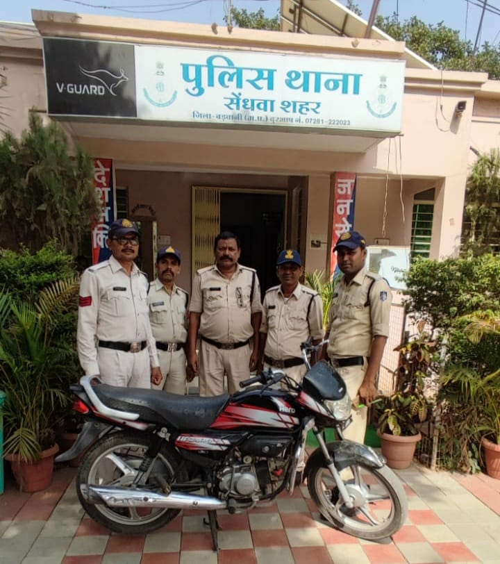 बड़वानी (सेंधवा) सेंधवा शहर पुलिस ने केवल 6 घण्टे मे ही मोटर सायकल चौर को दबोच लिया। टीआई श्री राजेश यादव ने बताया कि दिनांक 18 मई को फरियादी बंटी पिता अमर सिंह गायकवाड निवासी अंबेडकर कॉलोनी सेंधवा बरवानी ने थाना आकर रिपोर्ट कि वह इयर फोन खरीदने पुराने बस स्टैंड आया था और बाइक को दुकान के सामने खड़ी कर सामान खरीदने लगा इतनी देर में जब वापस आया तो उसकी बाइक नहीं मिली फरियादी ने थाना आकर बाइक चोरी की रिपोर्ट दर्ज कराई जो सेंधवा शहर टी आई राजेश यादव ने इस वारदात को काफी गंभीरता से लिया एवं एसपी श्री दीपक कुमार शुक्ला के निर्देशन एवं अतिरिक्त पुलिस अधीक्षक श्री आरडी प्रजापति एवं एसडीओपी श्री मनोहर सिंह बारिया के मार्गदर्शन मे स्वयं के नेतृत्व में टीम के साथ काम करते हुए तकनीकी रूप से अनुसंधान किया जो एक संदिग्ध की जानकारी मिली उस जानकारी के आधार पर मुखबिर तंत्र को सक्रिय कर उस संदिग्ध की फोटो की शिनाख्त कराने के लिए कई मुखबिरो को फ़ोटो दिखाई गई जो जानकारी मिली की संदिग्ध विक्की उर्फ नितिन सुदामा कॉलोनी का रहने वाला है,