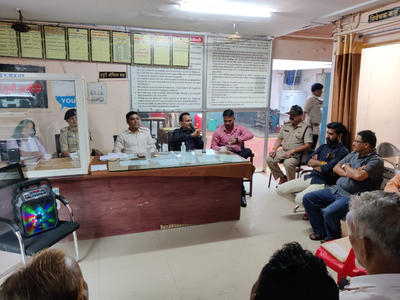 बड़वानी / आगामी त्यौहार मोहर्रम,नागपंचमी व आदिवासी दिवस को दृष्टिगत रखते हुए थाना कोतवाली प्रांगण मे कलेक्टर बड़वानी, श्री शिवराज वर्मा एवं पुलिस अधीक्षक, श्री दीपक कुमार  शुक्ला द्वारा शांति समिति कि बैठक ली। आगामी दिनो मे त्यौहारो को देखते हुए सुरक्षा संबंध मे चर्चा, जुलुस एवं  त्योहारों पर आयोजित होने वाले कार्यक्रमों के संबंध में अनुमति लेने व जुलुस मे  अपतिजनक  गाने व नारे अनावश्यक क्रियाकलापो से बचने कि समझाईश दी गई । बाद सभी वरिष्ट नागरिको व्दारा  अधिकारियो को कार्यक्रमो में शांति व्यवस्था व सदभावना पुर्ण व्यवस्था बनाये रखने कि सहमति व आश्वासन दिया । कार्यक्रम मे कलेक्टर व पुलिस अधीक्षक व्दारा आगामी त्यौहारो में शांति व्यवस्था बनाने व शासन व्दारा अनुमति प्राप्त कर ही शासन के दिशा निर्देशो का पालन करते हुए त्योहारो को  शांति व सद्भावना पूरक मनाएंगे । जिसमे मुस्लिम समाज के सदर व समाजजनो ने शांति पूर्ण त्यौहार मनाने की  सहमति प्रदान की गई .। कलेक्टर एवं पुलिस अधीक्षक व्दारा बैठक मे आये नागरिको को माननीय मुख्यमंत्री महोदय व्दारा चलाई जा रही अंकुर योजना के बारे मे बताया गया । जिसमें प्रत्येक नागरिको को एक पौधा लगाने का संकल्प लेने हेतु बताया गया एवं निश्चित अवधि तक उस पौधे कि देखरेख करने पर प्राणवायु अवार्ड के संबंध में बताया गया । कलेक्टर एवं पुलिस अधीक्षक व्दारा बैठक मे आये नागरिको को आजादी के अमृत महोत्सव के उपलक्ष्य मे दिनांक 11 से 17 अगस्त तक हर घर तिरंगा अभियान के बारे में बताया गया । जिसमें भारत के नागरिको को एक सद्भावना के रुप मे आपस मे जोड़ने हेतु संकल्प लेने के बारे में ये अभियान है व लोगो मे देशभक्ति कि भावना जागृत करने से संबंधित यह अभियान के बारे मे बताया गया  । बैठक में जिसमे बड़वानी के एसडीएम,  श्री घनश्याम धनगर जी ,एसडीओपी, श्रीमती रुपरेखा यादव ,तहसीलदार  आशा परमार ,नगरपालिका अधिकारी, श्री कुशल डोडवे , एमपीईबी अधिकारी बड़वानी एवं थाना प्रभारी निरी. श्री शंकरसिंह रघुवंशी, मुस्लिम समाज के सदर सोकत कुरेशी व समाज के सदस्य रहीम खान , इमरान मंसुरी , सब्बीर हिंदू समाज के मिथुन, शोभाराम कुशवाह , किशनलाल बड़ोले , यंशवंत कुमावत , मुकेश गोठवाल , रविकांत सोनगरा एवं  नगर के  सामाजिक कार्यकर्ता, गणमान्य नागरिक, वरिष्ट नागरिक एवं अन्य संगठनो के प्रमुख एवं नगर सुरक्षा समिति के सदस्य आदि उपस्थित रहे l