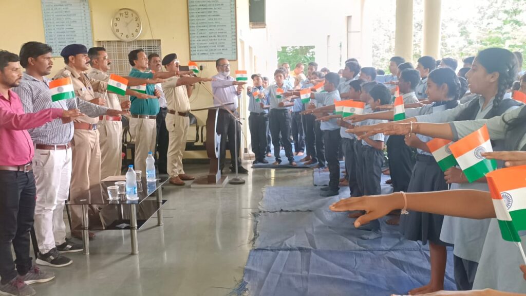 सेंधवा/बड़वानी- टीआई सेंधवा सिटी श्री राजेश यादव के द्वारा आज अपने स्टाफ एवं चाइल्डलाइन के सदस्यों के साथ सेंधवा के एक स्थानीय स्कूल में जाकर बच्चों को भारत सरकार के द्वारा चलाए जा रहे तिरंगा अभियान के संबंध में जानकारी देकर उन्हें अपने घर में और स्कूल में तिरंगा लगाने की शपथ दिलवाई साथ ही उन्हें तिरंगे का इतिहास, तिरंगे का महत्व, बताकर ध्वज संहिता का पालन करने के भी निर्देश दिए ।