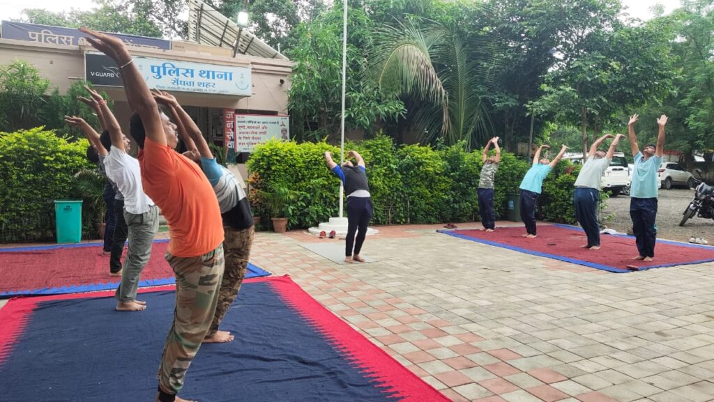 सेंधवा-बड़वानी/ एसपी दीपक कुमार शुक्ला ने जिले के समस्त थाना प्रभारियों को एवं उनके स्टाफ को शारीरिक एवं मानसिक रूप से फिट रहने के लिए योगासन, प्राणायाम एवं कसरत करने के निर्देश दिए है ।जो आगामी त्यौहार मोहर्रम ताजिया जुलूस विसर्जन एवं शिव डोला ने जिसमें फोर्स को घण्टे ड्यूटी करना पड़ती है। उसको सफलता पूर्वक कर पाएं।