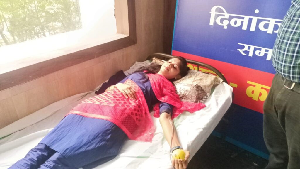 पहली बार रक्तदान करने वाली रेखा ने उत्साहित होकर किया रक्तदान