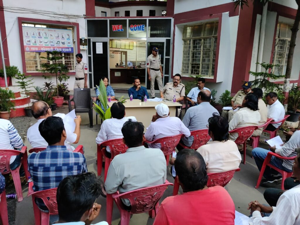 बड़वानी /पुलिस अधीक्षक दीपक कुमार शुक्ला द्वारा जिले के समस्थ थाना प्रभारीगण को आगामी नवरात्र, दशहरा एवं दिपावली के त्यौहारो के सबंध मे शहर के समस्त आयोजनकर्ता मंडलो एवं शहर प्रमुख की मिटिंग रखने हेतु निर्देशित किया गया । जिसके तारतम्य मे थाना बडवानी पर पुलिस अधीक्षक श्री शुक्ला के आदेश के पालन मे दिनांक 24.09.2022 को अतिरिक्त पुलिस अधीक्षक के मार्ग दर्शन एवं एसडीएम श्री घनश्याम धनगर बडवानी, तहसीलदार बडवानी, निरीक्षक शंकरसिंह रघुवंशी थाना बडवानी के नेतृत्व मे गरबा मंडल, नवदुर्गा पंडाल एवं दशहरा उत्सव समिति सदस्यों की बैठक आयोजित की गई जिसमे नवरात्री उत्सव एवं दशहरा पर्व आयोजनकर्ताओ से आगामी त्यौहारों को शांतीपूर्ण तरीके से मनाने एवं बिना प्रशासनिक अनुमति के कोई आयोजन नहीं करने, पांडालो पर सीसीटीवी कैमरा लगाने, विद्युत अस्थाई कनेक्शन लिया जाने, बाल्टी में रेत व पानी भर कर पांडाल के पास रखने तथा पाण्डालों मे बैनर लगाये जाकर आयोजनकर्ता का नाम मोबाईल नम्बर आदि नोट लिखने तथा पांडालो मे रात्रि में रुकने वालो की सुचना थाने पर देने, आपत्तिजनक गाने न बजाने, यातायात प्रभावित न करने, बडे आयोजनो में पार्किंग व्यवस्था करने, गरबा कार्यक्रम रात्री 12.00 बजे तक किये जाने, सभी आयोजनकर्ता को वालेंटियर बनाये जाने एवं रावण दहन स्थल पर कम से कम 50 वालेंटियर लगाने एवं पानी की व्यवस्था संबंधित प्रमुख निर्देश दिये गये ।