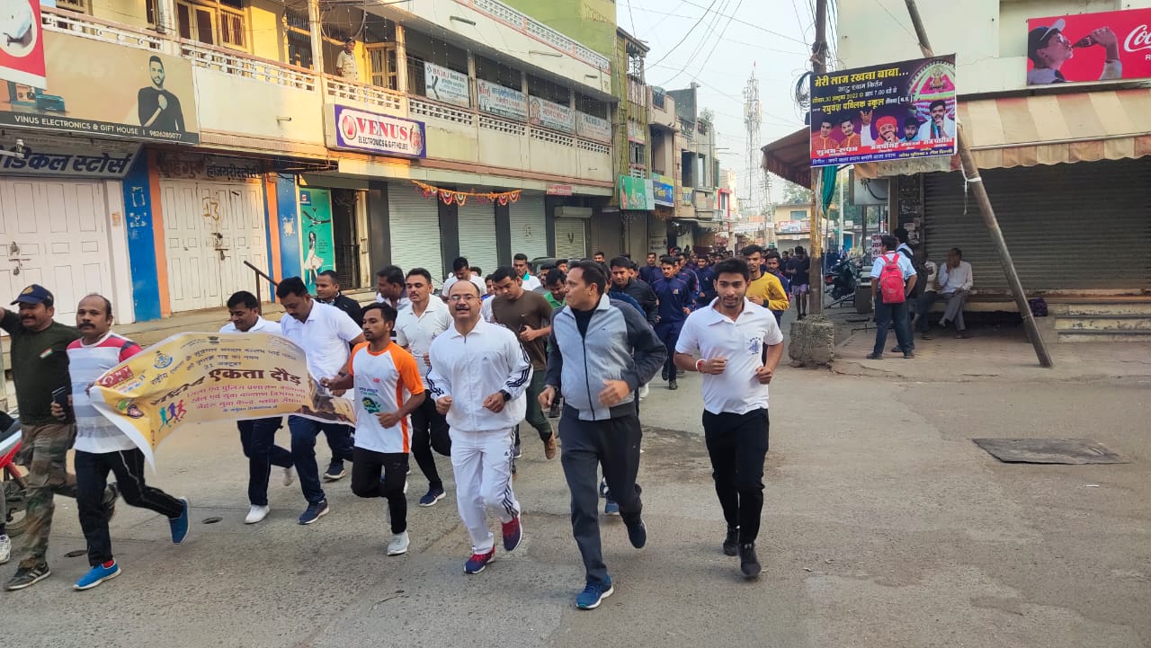 सेंधवा / 31 अक्टूबर राष्ट्रीय एकता दिवस पर  भारत के प्रथम उप प्रधानमंत्री एवं प्रथम गृहमंत्री, लोह पुरुष सरदार वल्लभभाई पटेल के जन्मदिवस पर पुलिस थाना सेंधवा शहर के द्वारा एसपी श्री दीपक कुमार शुक्ला के निर्देशन एवं एसडीओपी श्री कुंदन मंडलोई के मार्गदर्शन में टीआई सेंधवा सिटी राजेश यादव द्वारा एक एकता दौड़ का आयोजन किया गया। दौड़ में थाना सेंधवा सिटी टी आई राजेश यादव एवं उनका स्टाफ, एसडीओपी आफिस स्टाफ, नगर पालिका सीएमओ श्री कमलेश पाटीदार एवं उनका स्टाफ, नेहरू युवा केंद्र से रविन्द्र निगवाले, शर्मिला सस्तिया और उनकी टीम ,एनसीसी से ग्रुप लीडर  जयेश बारेला और उनकी प्लाटून एवं एनएसएस, ग्राम रक्षा समिति से ललित तिवारी,मनोज  पालिवाल एवम अन्य सदस्य शामिल हुए। एकता दौड़ थाना परिसर से प्रारंभ होते हुए किला रोड होकर मौसम चौराहा संत विनोबा भावे मार्ग होते हुए मुख्य ए बी रोड से थाना परिसर पहुंचकर समाप्त हुई ।