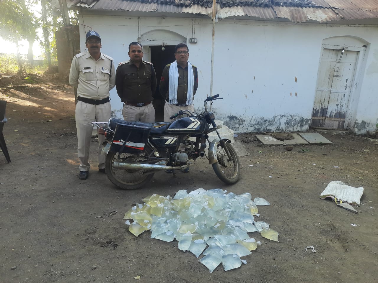 खेतिया / अवैध मदिरा के विरुद्ध चलाए जा रहे विशेष नशामुक्ति अभियान एवं नगर पालिका निर्वाचन के मद्देनजर, जिला कलेक्टर श्री शिवराज सिंह वर्मा के आदेश एवं प्रभारी जिला आबकारी अधिकारी सुश्री ममता भवेल के निर्देशन में आज दिनांक11/01/2023को आबकारी वृत खेतिया में गश्त के दौरान ग्राम टेमली मैं आमझिरी की तरफ से आते हुए एक मोटरसाइकिल चालक को रोकने पर चालक आबकारी बल को देखकर पेट्रोल टंकी पर रखा बौरा एवं मोटरसाइकिल फेंक कर फरार हो गया,फेंकी गई सामग्री की विधिवत् तलाशी लेने पर बोरे में 120 पॉलिथीन पाउच मैं 60 बल्क लिटर हाथभट्टी मदिरा एवं एक बिना नंबर की पुरानी CD 100 हीरो होंडा मोटरसाइकिल जप्त कर अज्ञात आरोपी के विरुद्ध आब. अधि.की धारा 34(1)ए, 34(2), के तहत प्रकरण कायम कर विवेचना मैं लिया, जप्त मदिरा का अनुमानित मूल्य 6000/एवं मोटरसाइकल का मूल्य लगभग 15000 रुपए है कुल मशरूका 21000/का जप्त हुआ,, उक्त कार्यवाही वृत्त प्रभारी खेतिया कमलेश बामनिया आबकारी उपनिरीक्षक द्वारा की गई, उक्त कार्यवाही मे आबकारी प्रधान आरक्षक राजेन्द्र जायसवाल, आरक्षक सुदेश आचार्य का महत्वपूर्ण योगदान रहा।