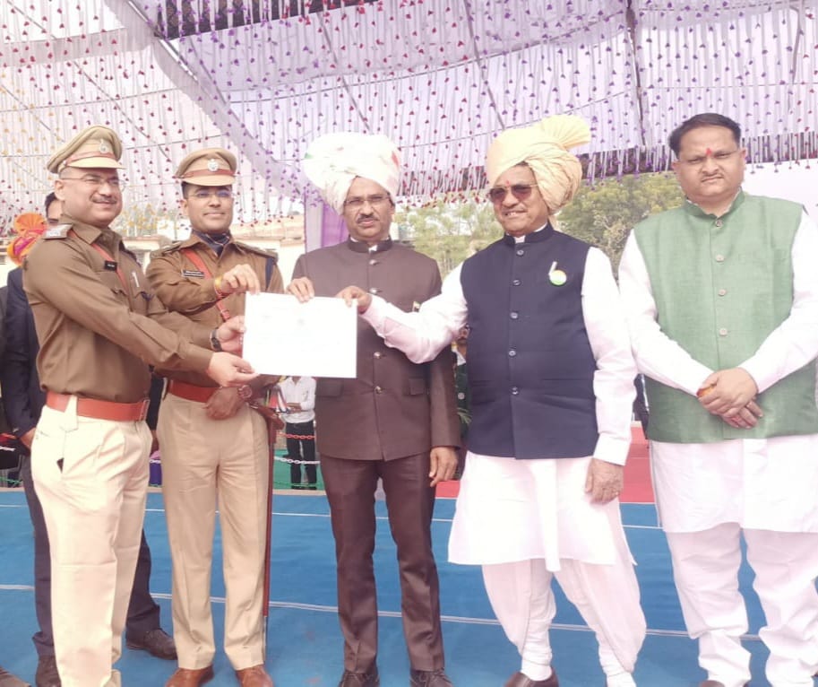 सेंधवा / जिला पुलिस मुख्यालय बड़वानी में आयोजित गणतंत्र दिवस समारोह में सेंधवा शहर टीआई राजेश यादव को सेंधवा शहर में कानून व्यवस्था, शांति बनाए रखने एवं अपराधों पर प्रभावी नियंत्रण के लिए जून 2018 से जिले में उनकी पदस्थापना के दौरान सातवी बार सम्मानित किया गया है। इसके साथ ही एसडीओपी सेंधवा रीडर उप निरीक्षक अनोक चंद पाटीदार को मेहनत लगन से दायित्वों के निर्वहन, asi संजय पांडे थाना ग्रामीण, आरक्षक नीरज डागरे थाना सेंधवा शहर को भी संपत्ति संबंधी मामलों में पतराशी, बरामदगी के लिए सम्मानित किया गया ।