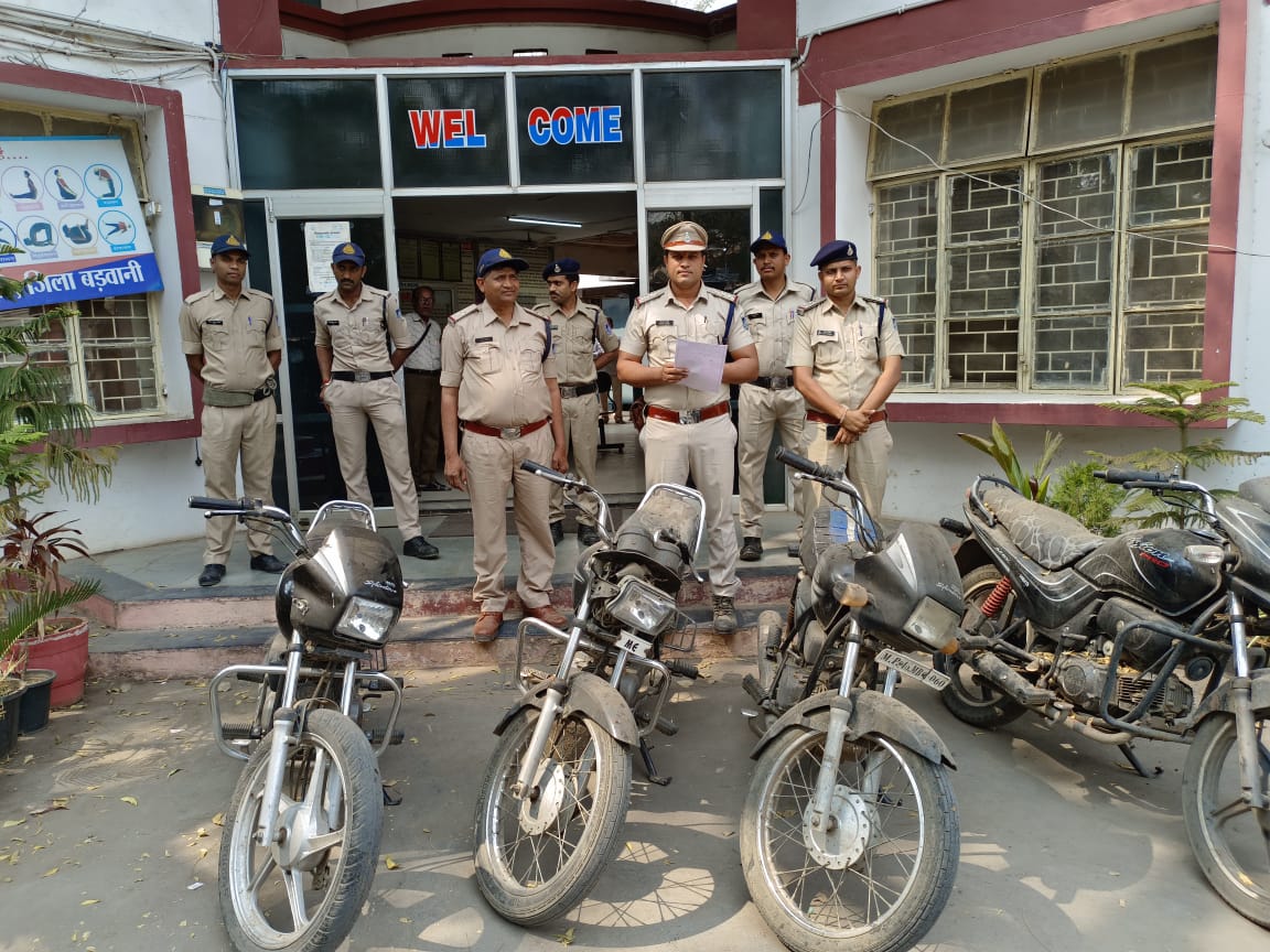 बडवानी / सम्पंत्ति सम्बंधी अपराधों की रोकथाम हेतु पुलिस अधीक्षक श्री दिपक कुमार शुक्ला द्वारा जिला बडवानी के सभी थाना प्रभारियों को नियमित रुप से चैकिंग करने एवं संदिग्धों पर नजर रखने हेतु निर्देशित किया गया था, पुलिस अधीक्षक श्री शुक्ला के निर्देश पालन में कोतवाली बडवानी पुलिस द्वारा लगातार चैकिंग कर संदिग्धों पर नजर रखी जा रही है, इसी तारतम्य में थाना कोतवाली बडवानी पुलिस को दिनाँक 01/03/2023 को मुखबीर द्वारा सुचना मिली कि चंचल चौराहा बडवानी पर दो लडके बिना नम्बंर की मोटर से एक देशी कट्टा बैचने की फिराक में लेकर घुम रहे है। मुखबीर की सुचना पर विश्वास कर पुलिस अधीक्षक श्री दिपक कुमार शुक्ला , अति.पुलिस अधीक्षक श्री आर.डी.प्रजापति एवं एसडीओपी अनुभाग बडवानी रुपरेखा यादव के मार्ग निर्देशन में थाना प्रभारी बडवानी निरीक्षक विकास कपिस के नेतृत्व में गठित टीम द्वारा मुखबीर द्वारा बताये स्थान पर दबिश देकर आरोपि) अरविंद उर्फ छोटा पिता सरवन सोलंकी जाति भिलाला उम्र 22 वर्ष निवासी पाल्या (2) विकास पिता जगन मंडलोई उम्र 20 वर्ष निवासी ग्राम कठोरा को पकडा तथा आरोपियों के कब्जे से एक देशी कट्टा , 2 जिंदा कारतुस , एक धारदार चाकु व एक बिना नम्बर की पेशन प्रो मोटर साईकिल जप्त किया जाकर थाना बडवानी पर अपराध क्रमाँक 173/2023 धारा 25(1-b)(a),25(1-a),25(1-b)(c),25(1-aa),25(1-b)(b) आर्म्स एक्ट का पंजीबध्द कर विवेचना में लिया गया। आरोपियों से टीम द्वारा सख्ती से पुछताछ की गई ,तो आरोपियों द्वारा बडवानी के आनंद नगर ,सुखविलास कालोनी , ग्राम कठोरा व इन्दौर से कुल 4 मोटर साईकिल चोरी करना स्वीकार किया गया आरोपियों का पुर्व अपराधिक रिकार्ड पता किया जा रहा है। उक्त आरोपियों की गिरप्तारी से थाना बडवानी एवं थाना एरोड्रम जिला इन्दौर के कुल 4 वाहन चोरी के अपराधों का खुलासा हुआ है।