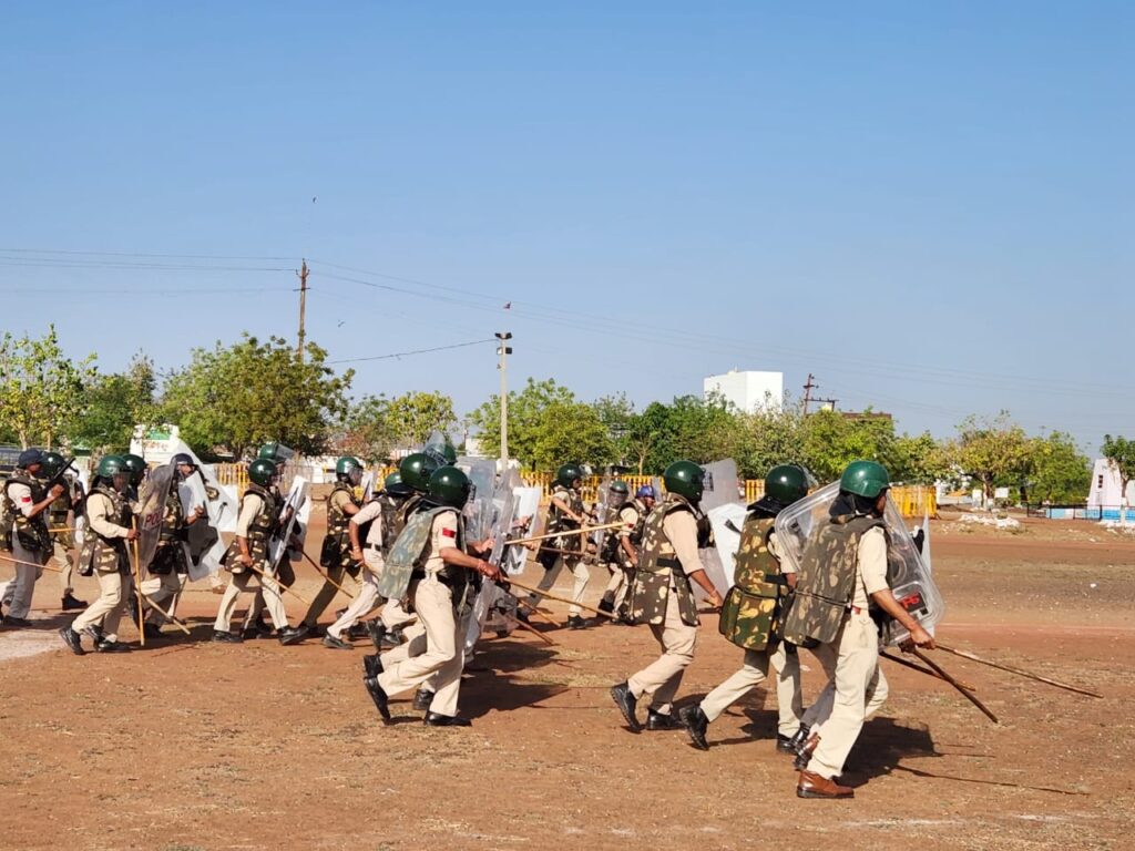 बड़वानी  / आज दिनांक 25.03.2023 शनिवार-पुलिस अधीक्षक श्री दीपक कुमार शुक्ला के निर्देशानुसार गणगौर नवरात्रि, रमजान, रामनवमी एवं हनुमान जयंती आदि त्योहारों को दृष्टिगत रखते हुए पुलिस लाइन बड़वानी में बलवा ड्रिल का अभ्यास करवाया गया l