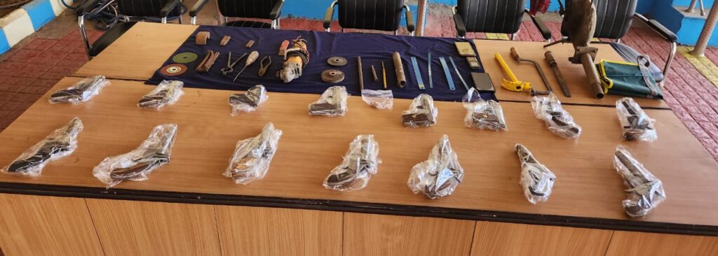 दो अर्ध निर्मित देसी कट्टे व औजार बनाने का सामान कीमती 30 हजार रुपये,