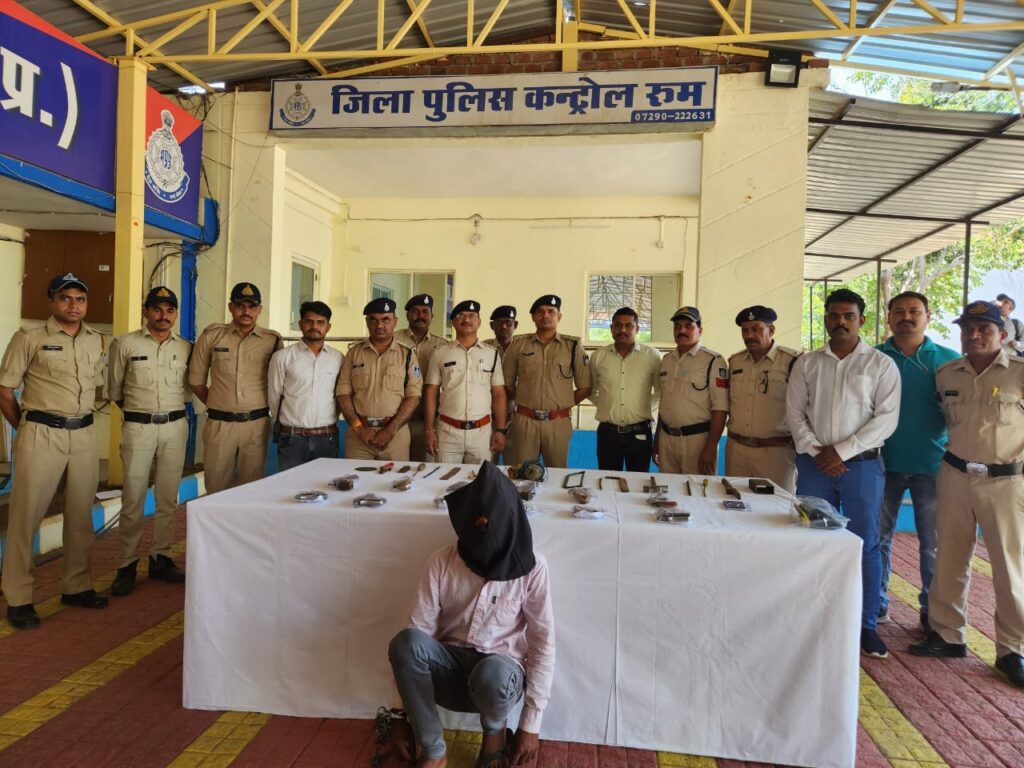 >कुख्यात हथियार माफिया सावन सिकलीगर को हिरासत में लेकर कुल 12 फायर आर्म्स , ज़िंदा कारतूस , हथियार निर्माण सामग्री, मोबाईल फोन सहित कुल 3 लाख,33 हजार 500 रूपए की सामग्री ज़ब्त।