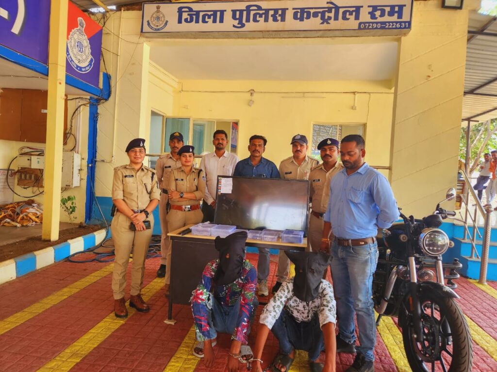 प्रकरणों की गंभीरता को देखते हुये पुलिस अधीक्षक जिला बडवानी श्री पुनीत गेहलोद के दिशा निर्देशन में तथा अतिरिक्त पुलिस अधीक्षक बडवानी श्री आर.डी. प्रजापति, एसडीओपी अनुभाग बडवानी श्रीमती रुप रेखा यादव के मार्गदर्शन में मामलों का बारिकी से अनुसंधान करने व चोरी गया मश्रुका की बरामदगी करने हेतु थाने से पुलिस टीम गठित कर थाना प्रभारी बडवानी सोनू सिटोले को चोरी गया माल बरामद करने हेतु सख्त निर्देश दिये गये । बडवानी पुलिस टीम व्दारा मुखबिर तंत्र सक्रिय कर सूचनाओ का संकलन किया गया मुखबिर सूचना प्राप्त होने पर थाना क्षैत्र के सभी बाहरी रास्तो पर चैकिंग पाईंट लगाये गये मुखबिर सूचना के अनुसार कसरावद पुल चैकिंग पाईंट पर नाकाबंदी कर चैकिंग की गयी जहाँ दो व्यक्ति एक काले रंग की बिना नम्बर की बुलेट मोटर साइकल बड़वानी तरफ से लेकर आते दिखे जो पुलिस को देखकर बुलेट वापस पलटाकर भागने लगे जिनको चैकिंग पर लगे पुलिस फोर्स व्दारा घेराबंदी कर पकड़ा व बुलेट चलाने वाले व्यक्ति से नाम पता पुछा तो उसने अपना नाम गोल्डी उर्फ उदय उर्फ उदिया पिता रुपसिंह भील निवासी रुपनगर सैगाँव बड़वानी का होना बताया एवं बुलेट पर पीछे बैठे व्यक्ति ने अपना नाम गोलु उर्फ बचकाना पिता दिलीपसिहं राठौर उम्र 19 वर्ष निवासी भवानी नगर थाना बाणगंगा जिला इंदौर का होना बताया व उक्त बुलेट के सम्बन्ध मे पुछते रिश्तेदार की होना बताया दस्तावेज का पुछते नही होना बताया तब संदेह होने पर सख्ती से पुछताछ करते दोनो ने बताया कि आज से लगभग 14  – 15 दिन पूर्व कर्मचारी कालोनी बड़वानी मे रात्रि मे दोनो ने एक सुने मकान के दरवाजे का ताला तोड़कर अन्दर घुसकर बुलेट मोटर साइकल चोरी करना स्वीकार किया व उक्त चुरायी गयी बुलेट मोटर साइकल थाना बड़वानी के अपराध क्र. 449/2023 धारा 457, 380 भादवि मे चोरी गयी बुलेट होना पायी जाने से उक्त आरोपी गोल्डी उर्फ उदय उर्फ उदिया एवं आरोपी गोलु उर्फ बचकाना को गिरफ्तार कर थाने लाकर पूछताछ करते दोनो के व्दारा थाना क्षैत्र के श्रीनाथ मेडिकल दुकान पर तथा बैबी टाऊन दुकान पर 23 मई की रात्रि में चोरी करना स्वीकार किया जो आरोपियान से विस्तृत पूछताछ कर पूछताछ के आधार पर श्रीनाथ मेडिकल स्टोर्स से चोरी गया मशरुका 1लाख 460 रुपये, बैबी टाऊन दुकान से चोरी गई चांदी की दो चैन, चांदी का ब्रेसलेट, चांदी की अंगुठी कुल मशरुका 10000 रुपये, तथा कर्मचारी कालोनी से चोरी गई रायल इनफिल्ड कंपनी की काले रंग की बुलेट कीमती 2 लाख रुपये व एक ओनिडा टी.व्ही. कीमती करीब 25000 रुपये तथा 02 हजार रुपये नगदी जप्त किये गये। आरोपियो व्दारा घटना में प्रयुक्त लोहे की दो टामिया, कपडे का बैग, हाथो में पहने कडे भी जप्त किये गये । बाद आरोपियो को माननीय न्यायालय के समक्ष प्रस्तुत कर अन्