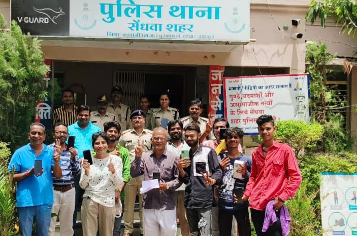 सेंधवा / बडवानी पुलिस अधीक्षक श्री पुनित गेहलोद के निर्देशन एवं अति पुलिस अधीक्षक श्री आर.डी. प्रजापति तथा एसडीओपी सेंधवा श्री कमलसिंह चौहान के मार्गदर्शन में थाना सेंधवा शहर पुलिस द्वारा सायबर सेल बड़वानी की मदद से थाना सेंधवा शहर के गुम हुए 9 मोबाइल किमती करीबन 03 लाख रुपये के ढुंढकर मोबाइल मालिकों के सुपुर्द किये ।