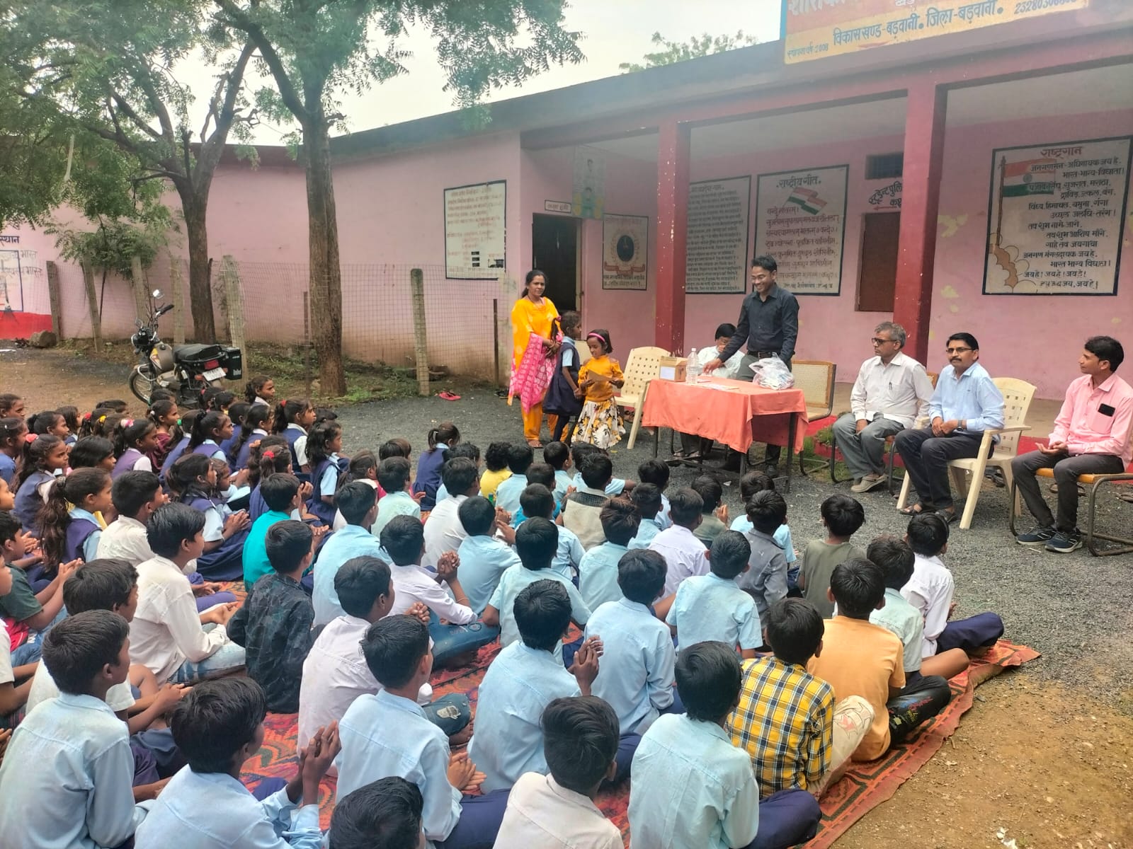 बड़वानी । स्कूल चले हम अभियान के तहत मध्यप्रदेश के शासकीय स्कूलों में तीन दिवसीय भविष्य से भेट कार्यक्रम चलाया जा रहा है।जिसमें वॉलिंटियर्स द्वारा पंजीयन करने के उपरांत स्कूल मे पहुंचकर बच्चों से संवाद स्थापित कर रहे हैं।इसी अभियान के तहत ग्राम बड़गाँव विकासखंड बड़वानी में वॉलिंटियर डेंटल सर्जन डॉ आजम शेख ने माध्यमिक विद्यालय बड़गांव पहुंचकर बच्चों से संवाद स्थापित किया। बच्चों से स्वास्थ्य संबंधी जानकारियां साझा की। दांतों की बीमारियों से अवगत करा कर बीमारियों से बचने के उपाय बताएं। बच्चों को तंबाकू, सिगरेट और गुटका पाउच से दांतो को होने वाले नुकसान और कैंसर के बारे में अवगत कराया। डॉ शेख विद्यालय में उपस्थित समस्त बच्चों को टूथ पेस्ट एवं पेन भेंट की। इस अवसर पर विद्यालय में प्रधान पाठक अनिल जोशी, अशफाक शेख, मनोज केसरी, भीमसिंह अलावा, राजेंद्र चौहान, रामकिशन पवार, रेखा बामनिया और दुर्गा चौहान उपस्थित रहे। डॉ आजम शेख का आभार शिक्षक मनोज केसरी द्वारा व्यक्त किया गया। विगत दिनों इसी विद्यालय में ग्रीन लंग्स फाउंडेशन द्वारा स्कूल चले अभियान अंतर्गत नव प्रवेशित बच्चों को स्कूली बैग का वितरण भी किया गया था।