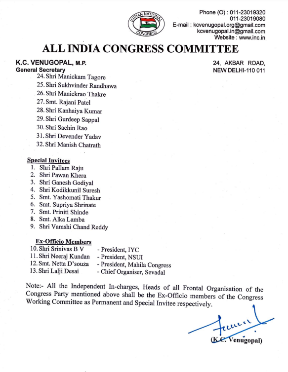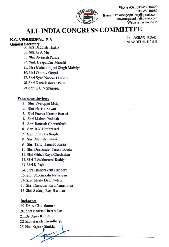 - सूची में मल्लिकार्जुन खरगे, सोनिया गांधी, मनमोहन सिंह, राहुल गांधी, अधीर रंजन चौधरी और अन्य बड़े नेताओं का उल्लेख किया गया था।