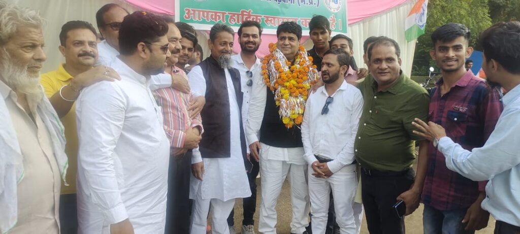 चंचल चौराहे पर अल्पसंख्यक विभाग लीगल सेल जिलाअध्यक्ष नदीम शेख महामंत्री अनुज जैन ,असलम कुरैशी, शेख जमीर खेतिया, अहमद हुसैन सेंधवा, शादाब खान अंजड़ ने स्वागत किया,