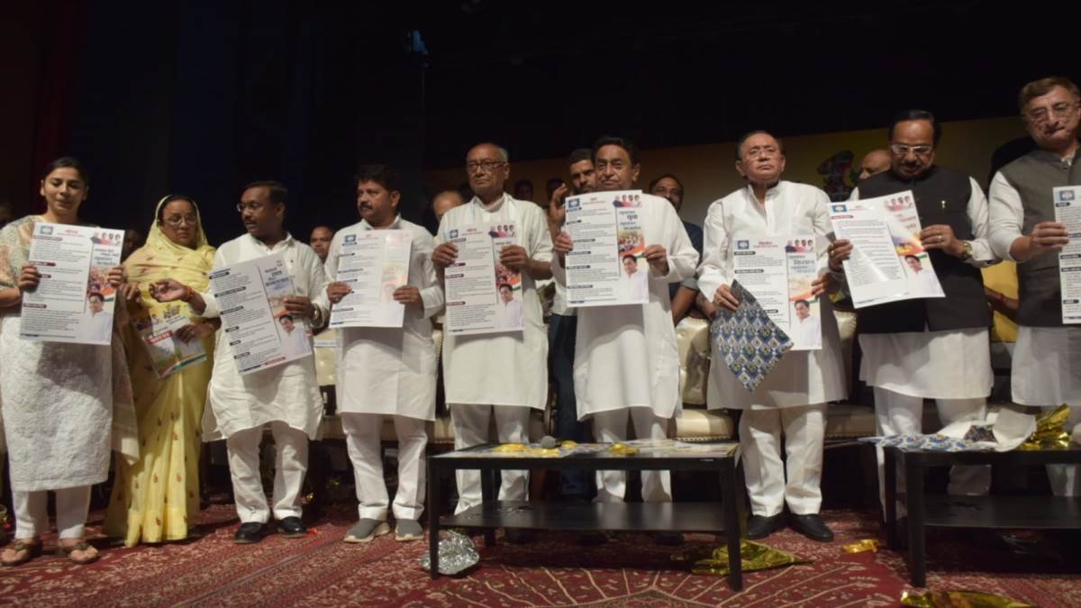 प्रदेश कांग्रेस अध्यक्ष कमल नाथ ने पार्टी के वचन पत्र विमोचन के मौके पर कहा कि कांग्रेस का चुनाव में नारा रहेगा ‘कांग्रेस आएगी खुशहाली लाएगी’। कांग्रेस सरकार ढाई हजार रुपए प्रति क्विंटल धान और गेहूं ₹2600 क्विंटल की दर पर खरीदेंगे। उपज का 3000 की क्विंटल देने का मिशन। 2 रुपये किलो की दर से गोबर खरीदा जाएगा। नंदिनी योजना प्रारंभ होगी। 2 लाख पदों पर भर्ती की जाएगी। युवा स्वाभिमान योजना प्रारंभ होगी 1500 से 3000 रुपये तक दिए जाएंगे। 25 लाख रुपए का स्वास्थ्य बीमा और 10 लाख रुपए का दुर्घटना बीमा देंगे स्वास्थ्य का अधिकार कानून बनाया जाएगासामाजिक सुरक्षा पेंशन योजना 1200 रुपये प्रतिमाह की जाएगी। मेरी बेटी योजना में 251000 रुपये दिए जाएंगे। आइपीएल में मध्य प्रदेश की टीम बने, इसका प्रयास किया जाएगा। आउटसोर्सिंग कर्मचारी के साथ न्याय होगा।