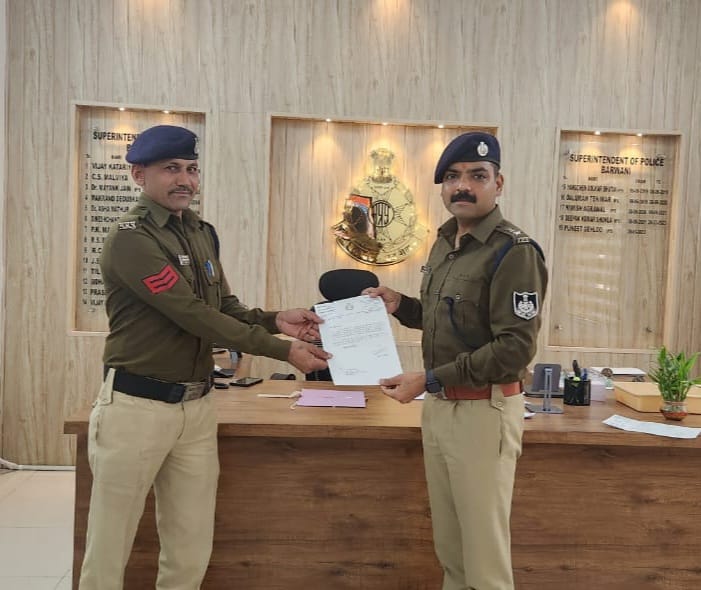 बड़वानी / आज दिनांक 30.01.24 को निरीक्षक, नाथु सिंह रंधा, तत्कालीन पदस्थापना थाना प्रभारी अजाक, बड़वानी द्वारा थाना अजाक बड़वानी के अपराध क्रमांक 08/2022 धारा 354,354-क भा0द0वि0, 3(1)(w)(i)3(2)(va) अजा/ अजजा अधिनियम, छेड़छाड़ के प्रकरण की उत्कृष्ट अनुसंधान व पेशेवर कार्यशैली पर माननीय न्यायालय द्वारा आरोपी को 03 वर्ष का कठोर कारावास व 5000/- रूपये के अर्थदण्ड से दण्डित किया गया है । उत्कृष्ट अनुसंधान के लिये पुलिस अधीक्षक, श्री पुनीत गेहलोद द्वारा इन्हे पुलिस अधीक्षक कार्यालय में बुलाकर प्रशस्ति पत्र प्रदान कर सम्मानित किया गया ।