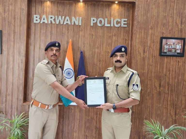 बड़वानी / आज दिनांक 14.03.2024 को सहायक उप निरीक्षक, श्री दिलीप मुवेल, थाना अंजड़ को थाना सेंधवा शहर पर पदस्थापना के दौरान थाना सेंधवा शहर के अप.क्र. 506/2022 धारा 354,354(ख), 341,506 भा.द.वि. धारा 3(1)(w)(i),3(2)(va),147, 148, 149,120-bभादवि के गंभीर मामले में प्रकरण के उत्कृष्ट अनुसंधान व पेशेवर कार्यशैली पर माननीय न्यायालय द्वारा आरोपी विशाल पिता महेंद्र पंवार उम्र 21 साल निवासी पुराना ए बी रोड़ राजपाल जिनिंग के सामने, सेंधवा को 02 (दो) वर्ष के कारावास एवं 3000/-रू. (तीन हजार रूपए) के अर्थदण्ड से दण्डित किया गया है। उक्त प्रकरण के उत्कृष्ट अनुसंधान के लिए सहायक उप निरीक्षक, श्री दिलीप मुवेल, थाना अंजड़ को पुलिस अधीक्षक श्री पुनीत गेहलोद द्वारा प्रशस्ति प्रदान कर सम्मानित किया गया l