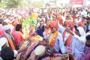 बड़वानी/ होली के 7 दिन पहले से प्रारम्भ होने वाला भगोरिया हाट को समाजजन आदिवासी संस्कृति वेशभूषा, रहन-सहन, खुशी, उत्साह, आपस में मेल-मिलाप करते हुए उत्सव के रुप में मनाते है। ढोल-मांदल की थाप और बांसूरी की धुन पर एक जैसे परिधान सहित अपने-अपने मनभावन परिधानो व गहनो के श्रंृगार से सज-धजकर सामूहिक रुप से थिरकना एक अलग ही आंनद का पल होता है। बड़वानी जिला मुख्यालय पर आज रविवार को भगोरिया उत्सव मनाया जा रहा है। इसके पहले जिले में अलग-बलग स्थानो पर सप्ताह भर में लगने वाले हाट-बाजारों में यह उत्सव देखने को मिला। आज भगोरिया हाट का आखरी दिन है आज रात्रि को होलिका दहन पर्व मनाया जाऐगा। इस बार के भगारिया उत्सव में लोकसभा चुनाव के चलते राजनेतिक रंग भी देंखने को मिला भाजपा के लोकसभा प्रत्याशी श्री गजेन्द्र पटेल व कांग्रेस के लोकसभा उम्मीदवार श्री पोरलाल खरते अपने-अपने समर्थको तथा पार्टी के पदाधिकारियो-कार्यकर्ताओं के साथ भगोरिया हाट-बाजार में न केवल मांदल की थाप पर थिरकते नजर आये बल्कि इस अवसर फायदा उठाकर जनसम्पर्क भी करते नजर आये।