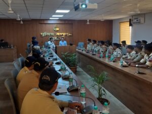 बड़वानी / लोकसभा चुनाव की तैयारी के मध्यनजर निर्वाचन आयोग के निर्देश पर सुरक्षा कर्मियों के कार्यों में कुशलता में वृद्धि के लिए पुलिस अधीक्षक बड़वानी श्री पुनीत गेहलोद के निर्देशन और मार्गदर्शन में जिले के सभी पुलिस अधिकारियों व कर्मचारीयों को चुनाव प्रशिक्षण पुलिस अधीक्षक कार्यालय सभागृह बड़वानी में लगातार दिया जा रहा है l इसी क्रम में आज दिनांक 14.04.24 को पुलिस अधीक्षक द्वारा पुलिस अधिकारियों कर्मचारियों को सेक्टर पुलिस अधिकारियों के दायित्व और ड्यूटी के साथ ही क्या करें और क्या ना करें की जानकारी दी गई साथ ही अनुविभागीय अधिकारी, थाना प्रभारी, चौकी प्रभारीगणो को चुनाव के संबंध में कानूनी प्रावधान और कानून व्यवस्था ड्यूटी आदर्श आचार संहिता के पालन तथा निष्पक्ष और भय मुक्त वातावरण में चुनाव कैसे कराये के संबंध में बताया l