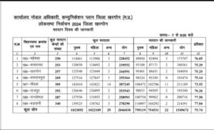 बड़वानी(रेवा की पुकार) लोकसभा निर्वाचन 2024 में संसदीय क्षेत्र 27 खरगोन-बड़वानी में 13 मई सोमवार को सम्पन्न सम्पन्न हुऐ मतदान में 75.74 प्रतिशत मतदाताओं ने अपने मताधिकार का उपयोग किया। खरगोन व बड़वानी क्षेत्र की आठों विधानसभाओं में से सर्वाधिक मतदान बड़वानी जिले की 189-पानसेमल विधानसभा में 77.50 प्रतिशत हुआ वही सबसे कम वोटिंग जिले की 187-संेधवा विधान सभा में 73.52 प्रतिशत हुई। उक्त के अलावा विधानसभा 183-महेश्वर में 76.05, 184-कसरावद में 75.29, 185-खरगोन में 75.25, 186-भगवानपुरा में 75.14, 188-राजपुर में 76.26,तथा 190-बड़वानी विधानसभा अन्तर्गत 77.04 प्रतिशत वोटिंग हुई। इस प्रकार खरगोन व बड़वानी जिले की कुल 8 विधानसभाओं में कुल 75.74 प्रतिशत मतदान हुआ। गौरतलब है कि इन दोनो ही जिलों में पुरुषों की अपेक्षा महिला मतदाताओं ने मतदान के प्रति अपनी रुची कम दिखाई। जबकि भगवानपुरा, सेंधवा, राजपुर व पानसेमल विधानसभा में पुरुषों की अपेक्षा महिला मतदाताओं की संख्या अधिक है। खरगोन एवं बड़वानी जिले के पुरुष व महिला मतदाताओं की संख्या तथा उसमें से हुए मतदान का विवरण इस प्रकार है-