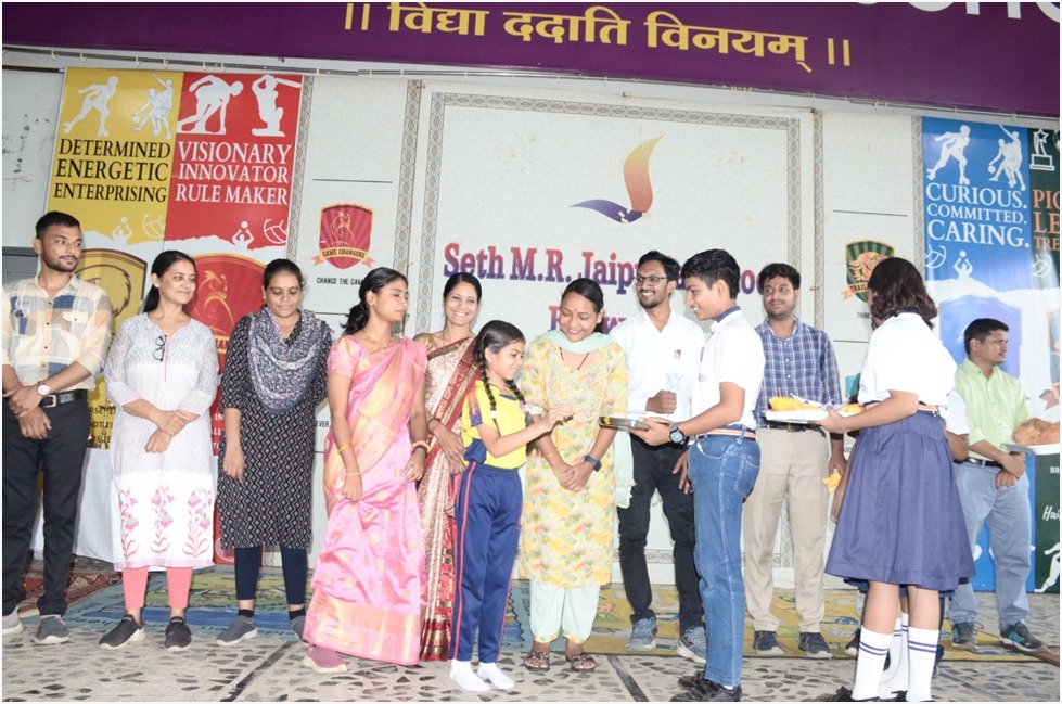 बडवानी / सेठ एम.आर. जैपुरिया स्कूल में गुरुपूर्णिमा के अवसर पर गुरुपूजन कार्यक्रम सपन्न हुआ| जिसके मुख्य अतिथि डायरेक्टर मृदुषी गुप्ता एवं कार्यक्रम के प्राचार्य डॉ. पी.व्ही. सत्य रमेश थे| कार्यक्रम का प्रारम्भ सरस्वती पूजन और वेदव्यास पूजन से हुआ| इसअवसर पर प्राचार्य डॉ. पी.व्ही. सत्य रमेश ने अपने आशीष वचन में कहा जीवन माता-पिता देते है किन्तु जिन्दगी गुरु देता है, इसलिए व्यक्ति जीवन भर गुरु के ऋण से मुक्त नही हो सकता| ज्ञान को बाँटना और फैलाना ही गुरु सेवा है| शिक्षक ध्रुव नायारण शुक्ला ने अपने उद्बोधन में कहा गुरु द्वारा दिया गया ज्ञान उस समुद्र की तरह है जिसमे से जो चाहो वो प्राप्त कर सकते हो| हर्षिता तंवर एन्ड ग्रुप द्वारा गुरु-वन्दना प्रस्तुत की गई | शाला के विद्यार्थी परिषद् एवं अन्य विद्यार्थियों द्वारा विद्यालय के सभी शिक्षको का पूजन एवं श्रीफल देकर सम्मानीत किया गया| आरोही यादव एवं ग्रुप ने “गुरुचरनन पर शीश नवाऊं” गीत पर कत्थक नृत्य ने समा बाँध कर खूब तालियाँ बटोरी | नित्या पाटीदार एन्ड ग्रुप ने गुरुकृपा और गुरु के महत्व को दर्शाता नाटक बहुत ही सराहनीय रहा | कार्यक्रम का संचालन शिक्षक अरुण शर्मा और अनूप कुरील ने किया एवं आभार शिक्षक महेश dwद्विवेदी ने माना |