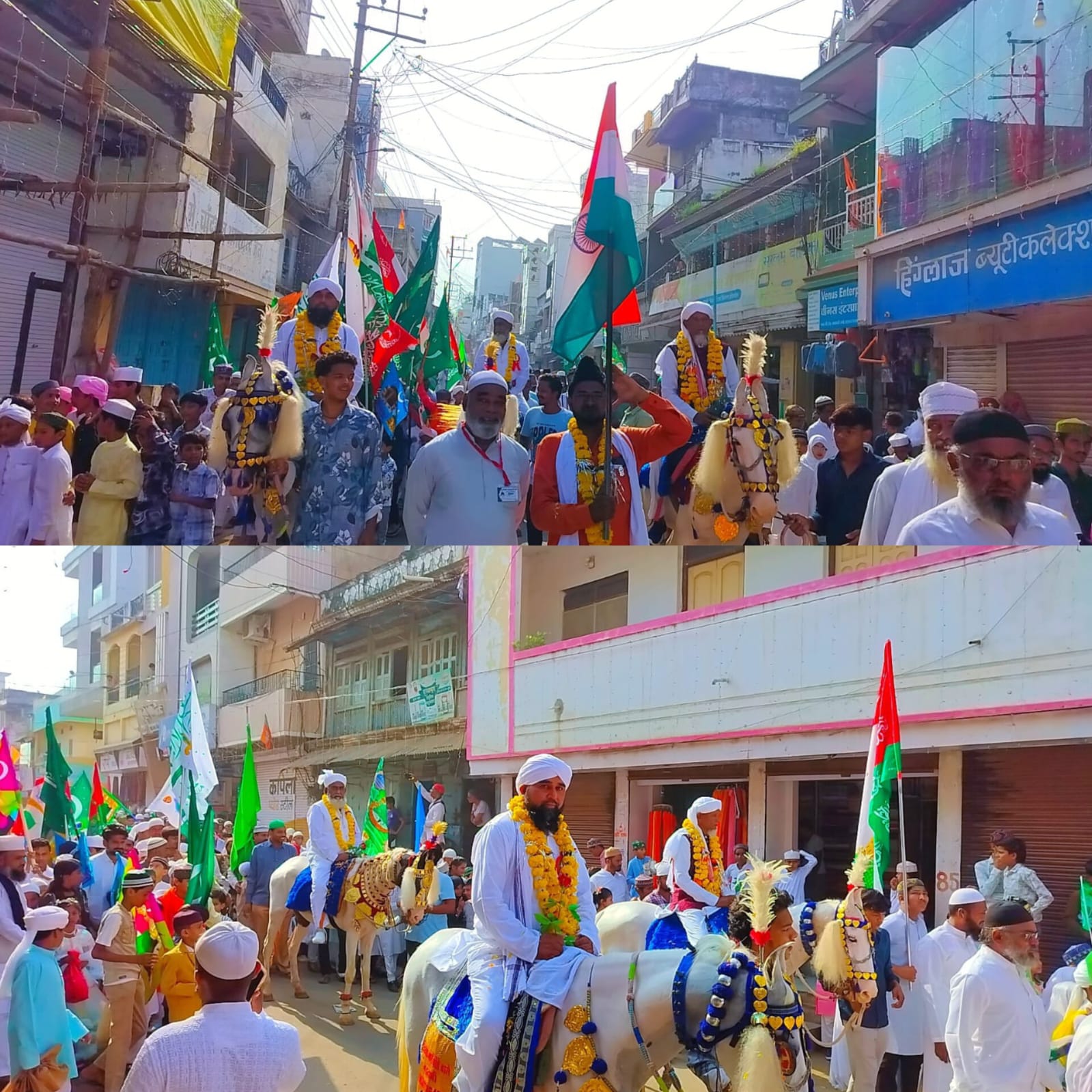 बड़वानी / पैगंबर मोहम्मद साहब के जन्मदिन अवसर पर आज बड़वानी मुस्लिम समाज ने बड़ा और शानदार जुलूस निकाला । ये जुलूस स्थानीय पाला बाजार चौक से अपने तय समय सुबह 8.10 पर प्रारंभ हुवा । जुलूस में सबसे आगे शहर की सभी मस्जिदों के इमाम और धर्मगुरु शामिल थे, घोड़ों पर समाज के सदर अब्दुल कदीर पटेल, जलसा कमेटी के सदर हाजी नन्ना, इज्तेमाई शादी कमेटी के सदर रफीक बक्श राइट वे टेलर को बैठाया गया था । जुलूस में छोटे छोटे नन्हे बच्चें भी अपने बड़ों के साथ शामिल हुए । जमात के प्रवक्ता सादिक चंदेरी ने बताया कि जुलूस पाला बाजार से प्रारंभ होकर,नवाब गंज,रोटरी स्कूल, एम जी रोड, झंडा चौक, बोहरा मोहल्ला, गुरु नानक चौक से होकर पुनः पाला बाजार पहूचा। पाला बाजार में इमाम साहब ने कुरान की तिलावत और नात शरीफ पेश की । हम्द आरिफ अहमद इकरा और नात हाजी नसीर कुरैशी ने पेश की । सभी मस्जिद के धर्मगुरुओं का स्वागत समाज के सदर अब्दुल कदीर पटेल, हाजी नन्ना मंसूरी,रफीक बक्श राइट वे टेलर ने किया तो वही इन प्रमुखों का स्वागत हाजी रफीक शेख, नासिर शेख बुंदेली ने किया । अंत में सलाम पेश करने के बाद मौलाना जब्बार नूरी ने मुल्क में अमन और तरक्की की दुवा की ।