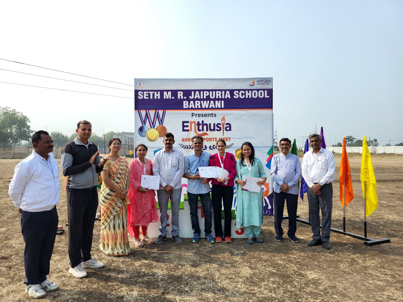बडवानी /  सेठ एम.आर. जयपुरिया स्कूल में खेल वार्षिकोत्सव समापन कार्यक्रम संपन्न हुआ | कार्यक्रम के मुख्य अतिथि हरिओम निमाड़े, अध्यक्ष मुकुंद यादव एवं रोहित रावत थे| कार्यकम में 100 मीटर रेस, 200 मीटर रेस ,400 मीटर रेस, हर्डल रेस, रीले रेस के साथ ही पालकगण के लिए भी रस्सा खिची और 100 मीटर रेस और कपल रेस का आयोजन किया गया |