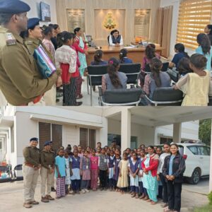 सभी बालिकाओ ने पुलिस अधीक्षक कार्यालय का भ्रमण कर उनकी कार्यप्रणाली को जाना। इस अवसर पर आर आय श्री चेतन बघेल, कार्यालयीन स्टाफ,सब इंस्पेक्टर ललीता चौहान, एएसआय रेखा यादव, प्रधान आरक्षक गीता कनेश, काउंसलर अनिता चोयल विभिन्न बस्तियो तथा गाव से आई बालिकाऐ उपस्थित थी।