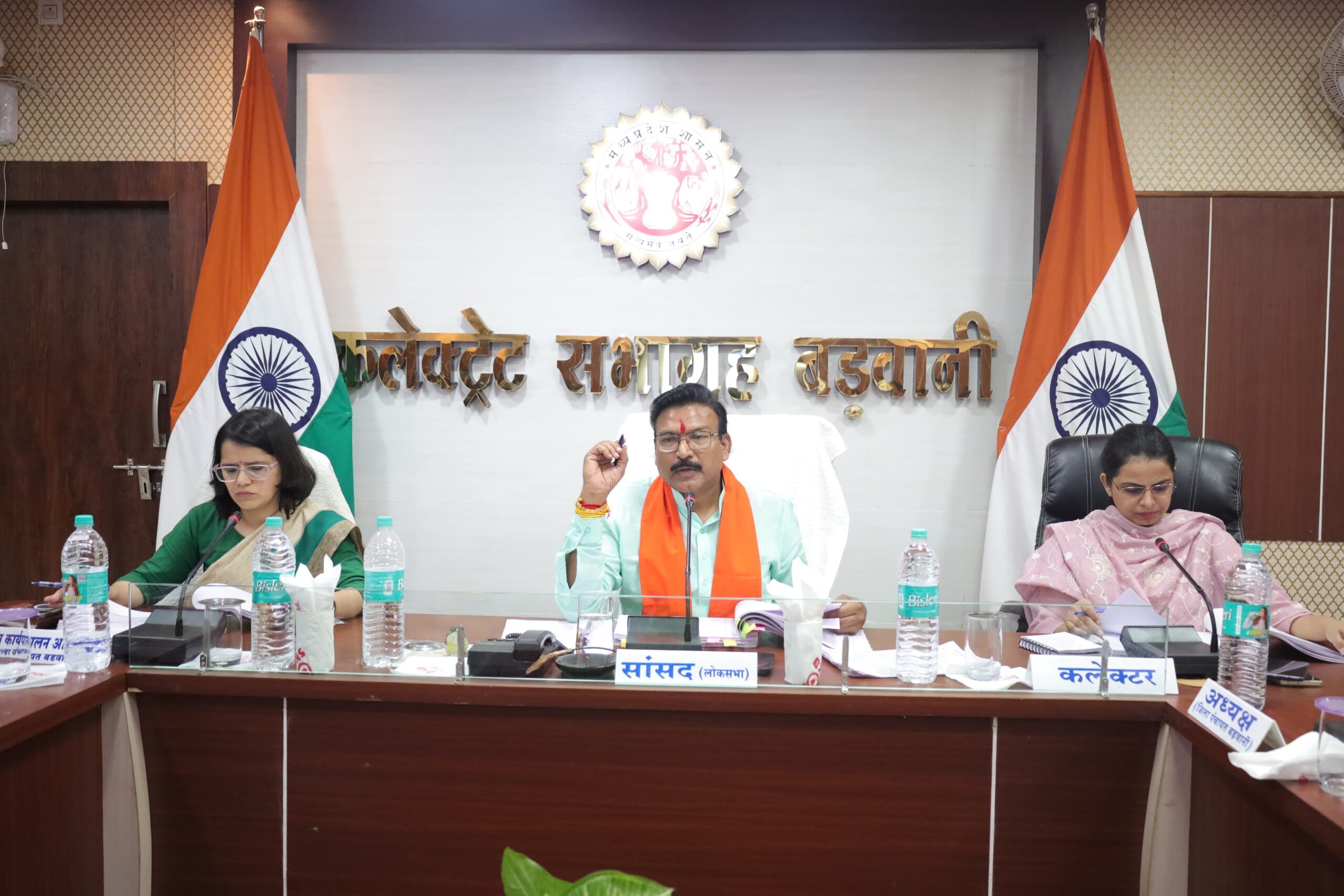 बड़वानी / कलेक्ट्रेट सभागृह, बड़वानी में लोकसभा सांसद श्री गजेंद्र सिंह पटेल की अध्यक्षता में जिला विकास समन्वय एवं निगरानी समिति (दिशा) की बैठक आयोजित की गई। बैठक में केन्द्र एवं राज्य शासन द्वारा संचालित विभिन्न जनकल्याणकारी योजनाओं तथा विकास कार्यों की विभागवार समीक्षा की गई।