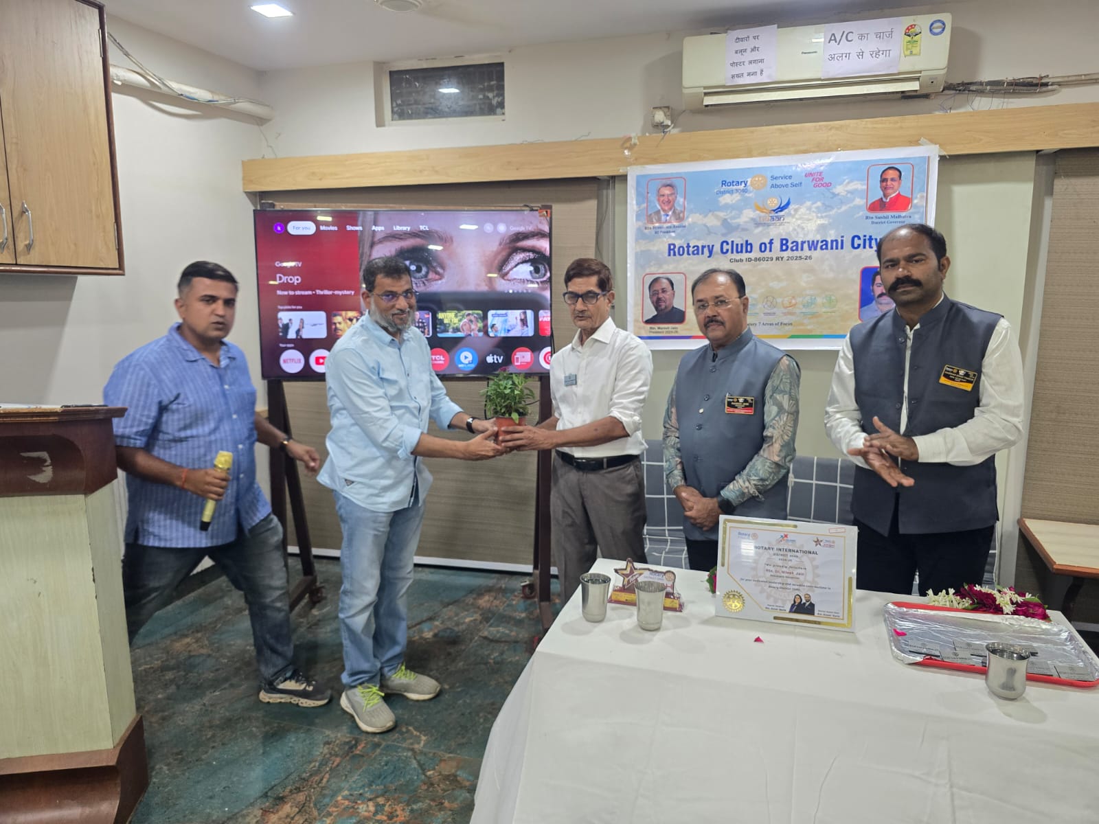 रोटेरियन अलि बिरला ने माल्यार्पण कर नए पदाधिकारियों का स्वागत किया रोटेरियन सचिन पंडित जी को रोटेरियन विनय काबरा जी ने पिन लगा कर स्वागत किया ,रोटेरियन सचिन पंडित जी ने अपने संबोधन में कहा कि क्लब को नए नए नवाचार करना चाहिए हमारे क्षेत्र में बड़े वृक्ष, फलदार छायादार वृक्ष के लिए सीड बॉल का हम अच्छा प्रयोग कर सकते है ।रोटरी अध्यक्ष मनीष जैन ने सभी सदस्यों को नए सत्र में अच्छे प्रोजेक्ट करने का आव्हान किया और सहयोग करने की अपील की , साथ ही नए सदस्यों को रोटरी पिन लगा कर स्वागत किया गया और नए सत्र की कार्यकारिणी की भी घोषणा की गई इस अवसर पर सभी सदस्यों को एक एक पौधा भी भेंट स्वरूप दिया गया और क्लब की पिन भी प्रदान की गई ,साथ ही क्लब में और डिस्ट्रिक्ट ने पहली बार रोटरी मंडलाध्यक्ष रोटेरियन सुशील मल्होत्रा जी,पूर्व मंडलाध्यक्ष रोटेरियन गजेन्द्र नारंग जी, आगामी मंडलाध्यक्ष निर्वाचित मुकेश साहू, सहायक मंडलाध्यक्ष मनीष छाबड़ा ,डिस्ट्रिक्ट अवार्ड चेयरमैन रोटेरियन अरुण वर्मा जी ने वर्चुअल उपस्थिति से सभी सदस्यों को पदाधिकारियों को बधाईयां दी ,पूर्व सहायक मंडलाध्यक्ष निलेश जैन द्वारा गत वर्ष किए गए प्रोजेक्ट के लिए क्लब को मिले पुरस्कारों के बारे में बताया गया और क्लब अध्यक्ष अलि असगर रिज़वी को मोमेंटो और प्रमाण पत्र प्रदान किए सचिव दर्शन सिंह ने साल भर का प्रोजेक्ट कैलेंडर के बारे में बताया और सभी सदस्यों का आभार और धन्यवाद ज्ञापित किया । इस अवसर पर रोटरी परिवार के सदस्य अलि बिरला,बुरहानी रिज़वी,निलेश जैन,अभिषेक उपाध्याय,अंकुर जैन,सौरभ जैन,,महिला सदस्य सपना जैन ,अर्पिता लाड़,सोनल उपाध्याय,शालिनी पटौदी,अंकिता काबरा,फातेमा रिज़वी,सपना जैन, आमेना बिरला ,बच्चे उपस्थित रहे ,।