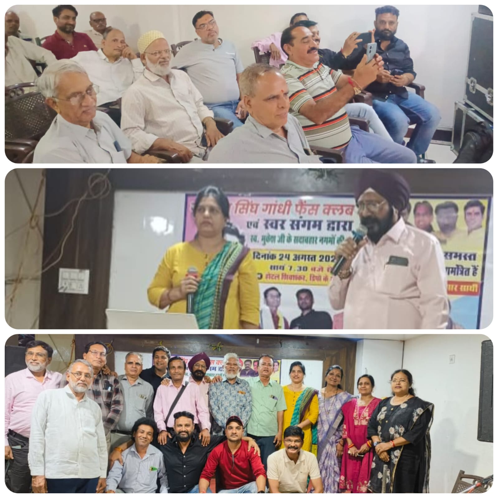 बडवानी / रविवार को स्थानीय शिव शंकर के हाल में गुरमीत सिंह गांधी फैंस क्लब तथा स्वर संगम ग्रुप द्वारा स्वर्गीय मुकेश जी की याद में संगीतमय श्रद्धांजलि कार्यक्रम आयोजित किया ।जिसमें बड़वानी ,खरगोन,मनावर,सिंघाना के गायकों द्वारा मुकेश जी के सुमधुर गीतों की प्रस्तुति दी गई।