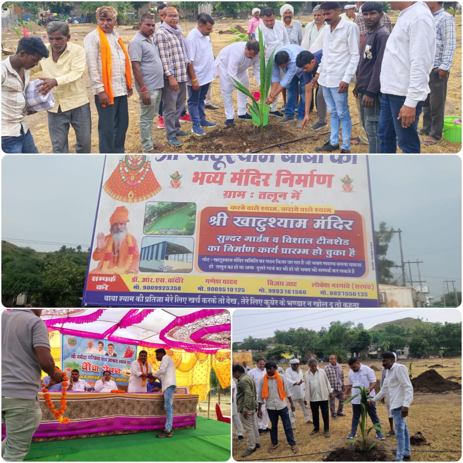 बडवानी / ग्राम पंचायत तलून खुर्द में खाटु श्याम मंदिर प्रांगण में मां नर्मदा परिक्रमा पथ आश्रम स्थल पर पोधा रोपण कार्यक्रम आयोजित किया गया। सरपंच ने बताया कि यहां पर मां नर्मदा परिक्रमा वासियों के लिये मांगलिक भवन निर्माण कार्य बहुत जल्द शुरू किया जायेगा । परिक्रमा वासियों उत्तम आवश्यकता रहेंगी एवं गांव से जुड़ें धार्मिक संस्कृति कार्यक्रम किया जायेगा। मां नर्मदा परिक्रमा पथ आश्रम स्थल पर आयोजित कार्यक्रम श्री बलवंत पटेल जिला पंचायत अध्यक्ष बड़वानी, पप्पू पटेल जनपद पंचायत बड़वानी अध्यक्ष, जनपद पंचायत उपाध्यक्ष भूपेंद्र गोयल, लोकेश नरगावे सरपंच अरूण चोहान उपसरपंच एवं शासकीय कर्मचारी एव ग्राम पंचायत पंचगण सन्तोष नागोर कैलाश कुमावत हरि गेहलोत। डां चादोरे राजु चोधरी अमर सिंह जाट मुकेश जाट राज जाट जगदीश जाट जैमाल पटेल संदीप जाट विजय जाट रामरतन नागोर समस्त ग्रामवासियों उपस्थित रहे हैं।