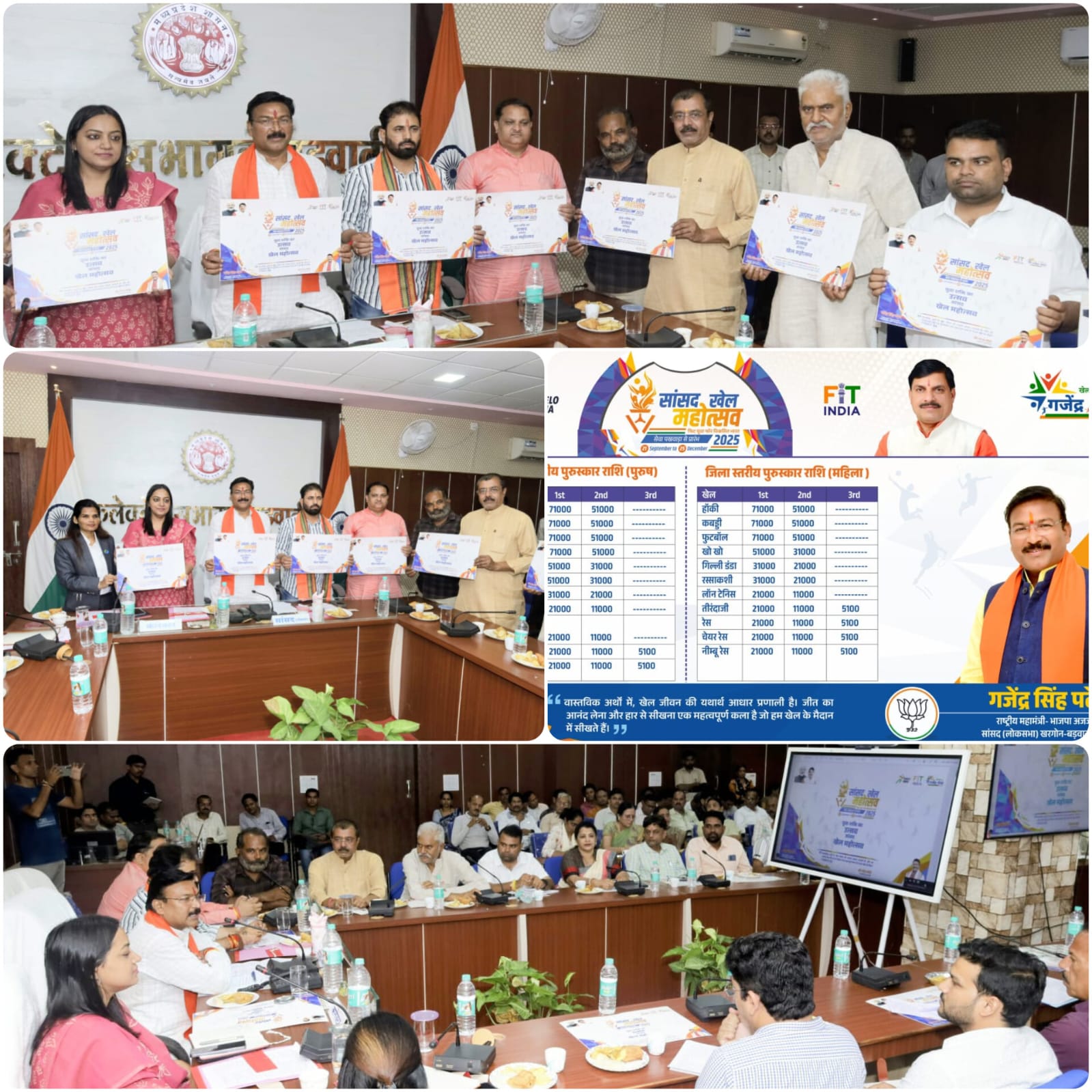 बड़वानी / कलेक्ट्रेट सभागृह बड़वानी में आगामी सांसद खेल महोत्सव 2025 की तैयारियों को लेकर महत्वपूर्ण बैठक का आयोजन किया गया। बैठक में खेल महोत्सव की विस्तृत रूपरेखा, प्रतिभागियों की सहभागिता, प्रतियोगिताओं की श्रेणियाँ तथा आवश्यक व्यवस्थाओं पर विस्तार से चर्चा की गई। लोकसभा सांसद श्री गजेंद्र सिंह पटेल ने कहा कि यह खेल महोत्सव युवाओं और खेल प्रेमियों के लिए प्रेरणा का स्रोत बनेगा। खेलों के माध्यम से स्वास्थ्य, अनुशासन और खेल भावना को बढ़ावा देना हमारा मुख्य उद्देश्य है। उन्होंने कहा कि “मनुष्य का पहला सुख होता है निरोगी काया”, इसलिए हमें स्वस्थ शरीर और मन के लिए खेलों को अपने जीवन का हिस्सा बनाना चाहिए। पारंपरिक खेल न केवल हमारी संस्कृति और सभ्यता का परिचय कराते हैं, बल्कि तन और मन को स्वस्थ, मजबूत और सक्रिय बनाकर जीवन में सकारात्मक ऊर्जा का संचार करते हैं।