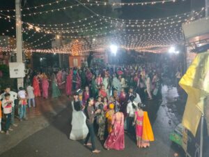 जुलवानिया / नवरात्रि महोत्सव में शनिवार की रात को दाडिया नाईट का आयोजन किया गया मां दुर्गा मंदिर समिति के द्वारा रात्रि में मां दुर्गा की आरती की गई इसके पश्चात मां दुर्गा की चालीसा पर सैकड़ो की संख्या में मात्र शक्तियों ने पाठ किया नाद म्यूजिकल ग्रुप इंदौर द्वारा गायक भूपेंद्र डोंगरे ने डांडिया नाइट में गरबा प्रस्तुत किया बारिश के चलते महिलाएं पंडाल में नाचते रहे और गरबा नृत्य करते रहे कार्यक्रम के दौरान लकी ड्रा में पुरस्कार भी दिए गए आयोजन में अश्विन जायसवाल डॉक्टर अंशु अंकुश जैसवाल महेश कड़वाल, राधेश्याम जयसवाल कमलेश साहू दिव्यानी वर्मा नीतू कौशल रेखा शर्मा आशा साहू नीलम साहू अनीता श्रीवास सचिन जायसवाल प्रखर साहू कालुराम जायसवाल का सहयोग रहा