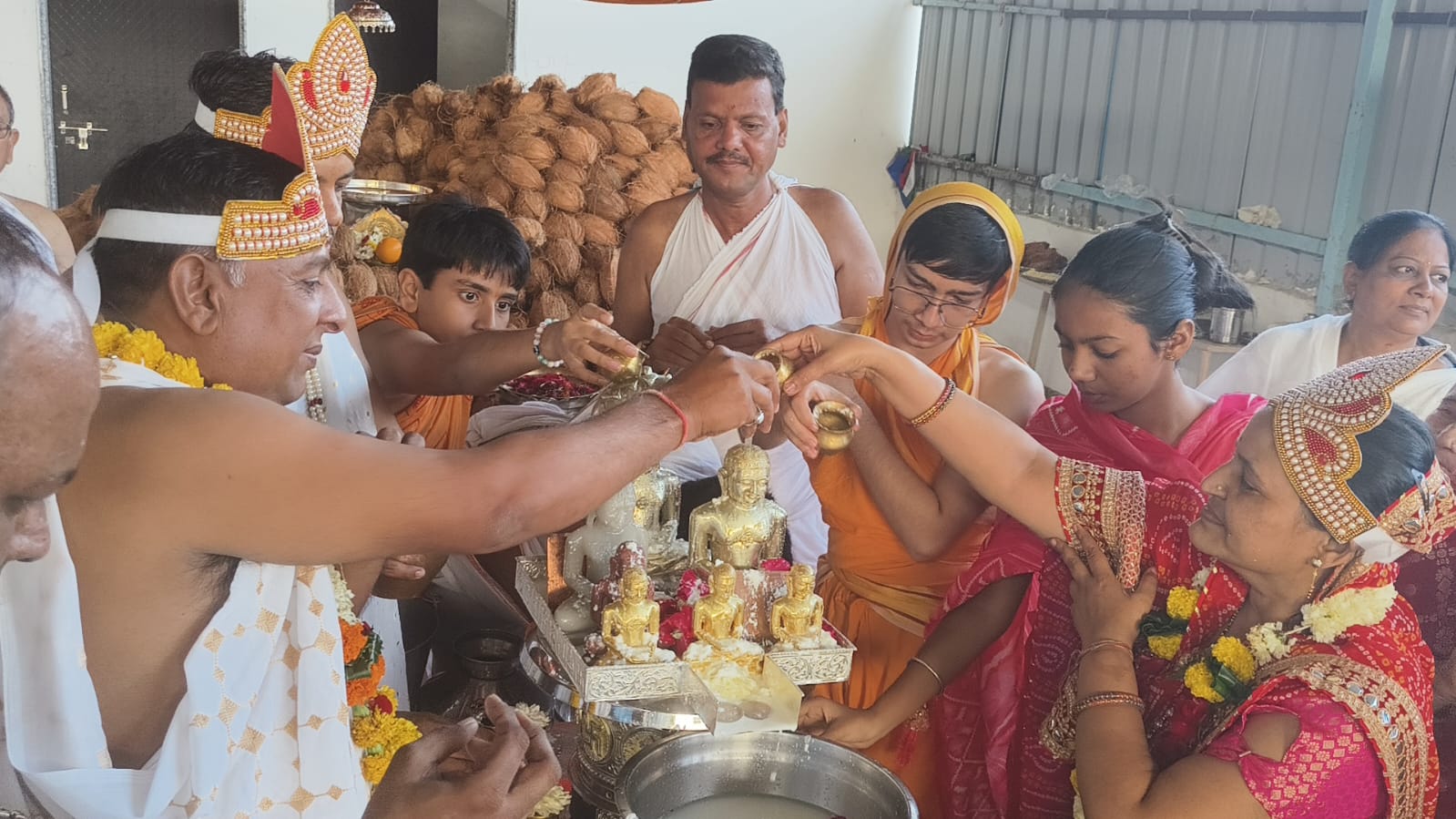 आज सिद्ध चक्र विधान के अंतिम दिन की प्रथम शांतिधारा करने का सौभाग्य श्रीमती सविता रूपेश जैन परिवार , द्वितीय शांतिधारा करने का सौभाग्य श्रीमती चन्दा जी दीपचंद जी गौरव जी अंजली जी पहाड़िया परिवार, और तृतीय शांतिधारा करने का सौभाग्य पदम कुमार प्रकाश चन्द काला परिवार बड़वानी को प्राप्त हुआ,, हवन के पूर्व स्वस्तिक पर मुख्य कलश रखने का सौभाग्य ट्रस्ट के महामंत्री श्री गौरव जी अंजली जी पहाड़िया परिवार बड़वानी को प्राप्त हुआ।