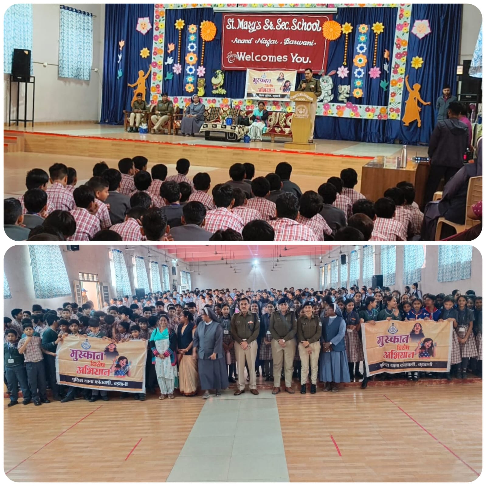 बड़वानी / महिला सुरक्षा शाखा, पुलिस मुख्यालय भोपाल के निर्देशानुसार जिले में “मुस्कान विशेष अभियान” दिनांक 01 नवम्बर से 30 नवम्बर 2025 तक संचालित किया जा रहा है। कोतवाली थाना प्रभारी श्री दिनेश कुशवाह के द्वारा इसी कड़ी में आज सेंट मेरी हायर सेकंडरी स्कूल, बड़वानी में बालिकाओं के बीच एक महत्वपूर्ण जागरूकता कार्यक्रम आयोजित किया गया।