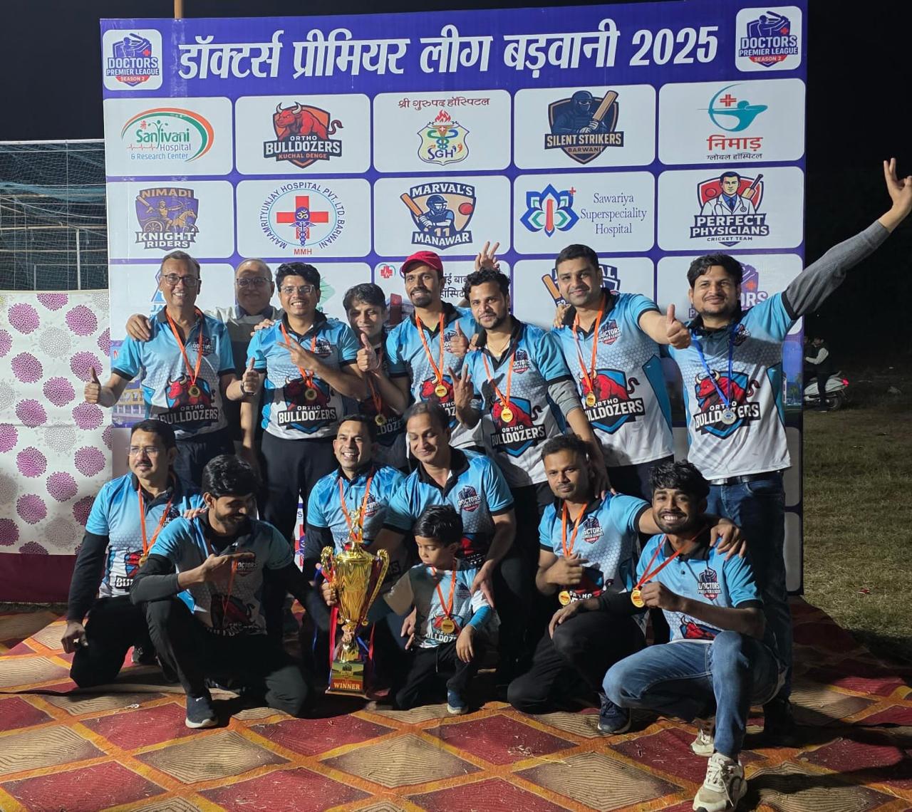 बड़वानी / जीवन में खेल जहां हमें शारीरिक रूप से तंदुरुस्तता प्रदान करते हैं वहीं दिनचर्या में अनुशासन टीम भावना के साथ-साथ व्यवहार में सकारात्मक भाव का संचार करते हैं। जन-जन में खेल भावना के साथ उत्तम स्वास्थ्य का संदेश देने के लिए डॉक्टर प्रीमियर लीग के द्वारा आशा ग्राम रोड कासा अकादमी में टूर्नामेंट का आयोजन किया गया जिसमें सभी चिकित्सक बंधुओं के द्वारा उत्साह के साथ भागीदारी की गई। डॉक्टर प्रीमियर लीग के फाइनल मैच में ऑर्थो बुलडोजर और निमाड़ी नाइट राइडर्स के बीच मुकाबला हुआ जिसमें ऑर्थो बुलडोजर के द्वारा 114 रन बनाए गए वही निमाड़ी नाइट राइडर्स 103 रन पर आल आउट हो गई। फाइनल मुकाबला ऑर्थो बुलडोजर के द्वारा जीता कर ट्रॉफी पर कब्जा जमाया गया। इंडियन मेडिकल एसोसिएशन बड़वानी के तत्वाधान में आयोजित डॉक्टर प्रीमियर लीग2025 टूर्नामेंट को सफल बनाने मेंआयोजन समिति के डॉ जे पी नागौर, डॉ दीपक मुवेल, डॉ गजेंद्र सोलंकी, डॉ राकेश पाटीदार का सराहनीय समन्वय रहा। इंडियन मेडिकल एसोसिएशन बड़वानी के अध्यक्ष डॉ एम एस सोलंकी ने बताया सभी के प्रयास से हम डॉक्टर प्रीमियर लीग बड़वानी 20-25 का सफल आयोजन करने में सक्षम बने उन्होंने सभी प्रतिभागियों को प्रोत्साहित करते हुए विजेता टीम को बधाई दी। इस दौरान बड़ी संख्या में चिकित्सकगण , दर्शनगण उपस्थित थे।